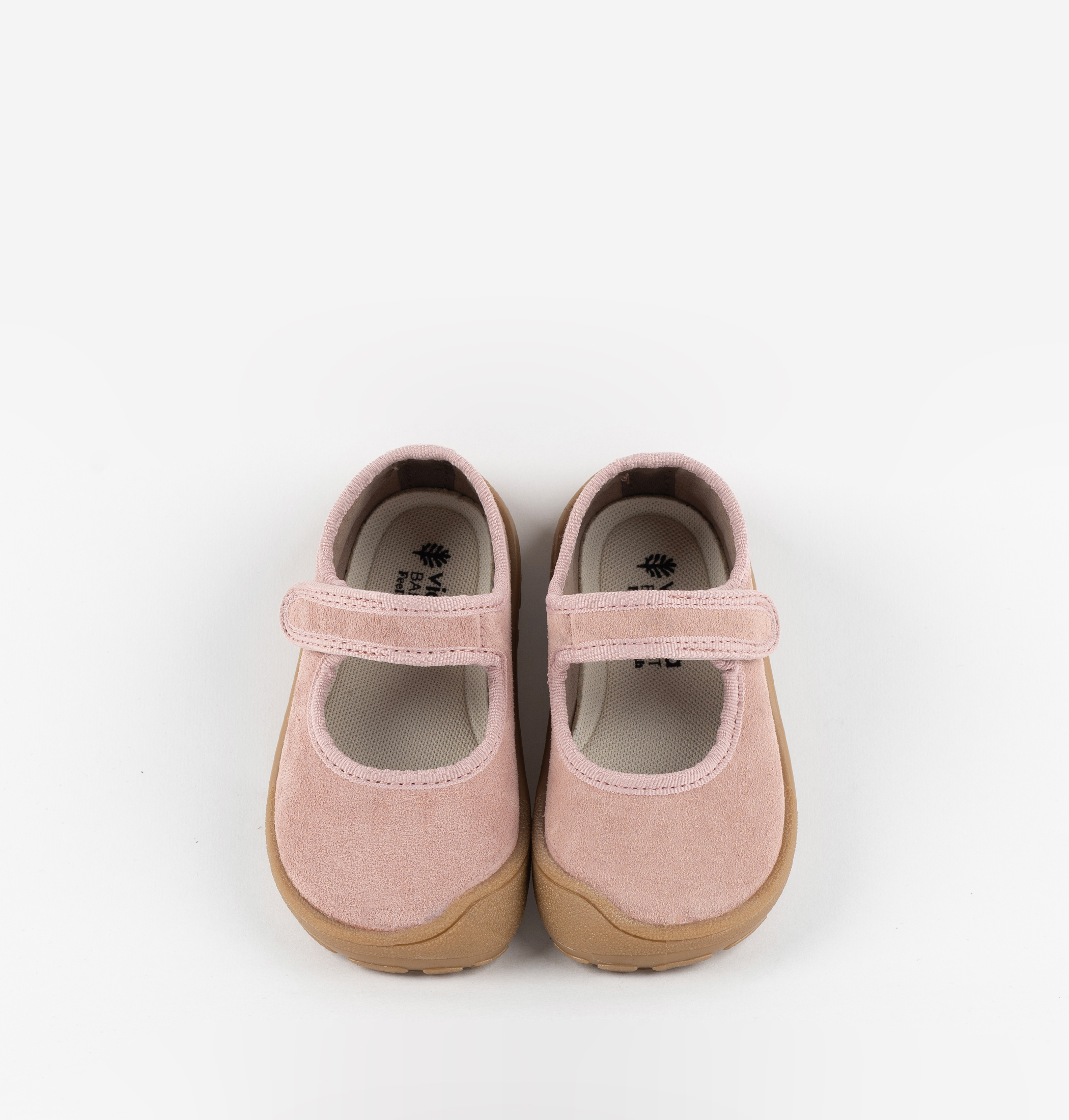 Besatz in Ton-in-Ton. Verschluss mit Klettverschluss, der das Anziehen erleichtert und Halt gibt. Flexible Sohle in Karamellfarbe.