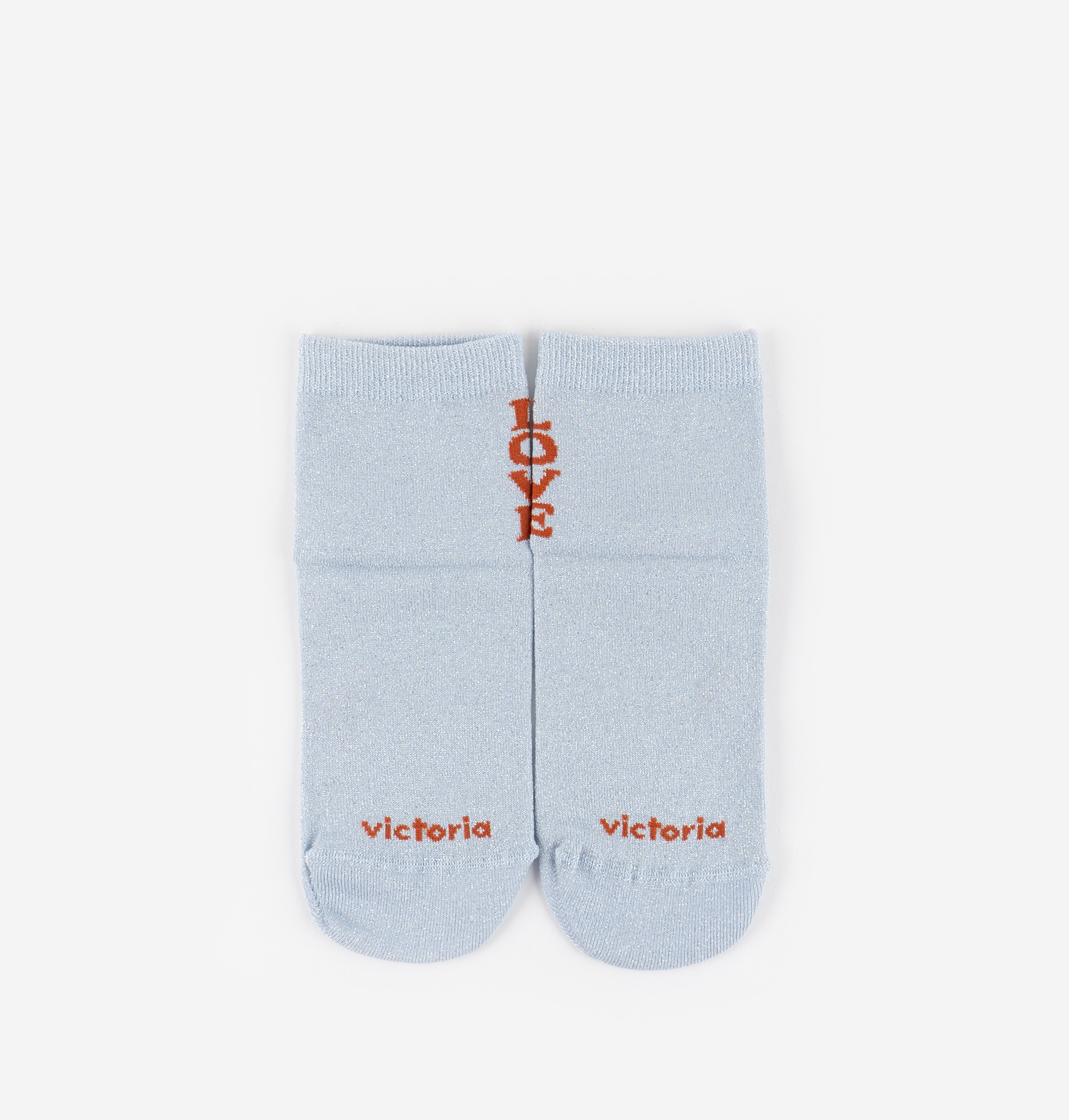 Barefoot-Lurex-Damensocke mit love-Stickerei und passendem Markenlogo auf der Sohle. Perfekt kombinierbar mit unseren Sneakern.