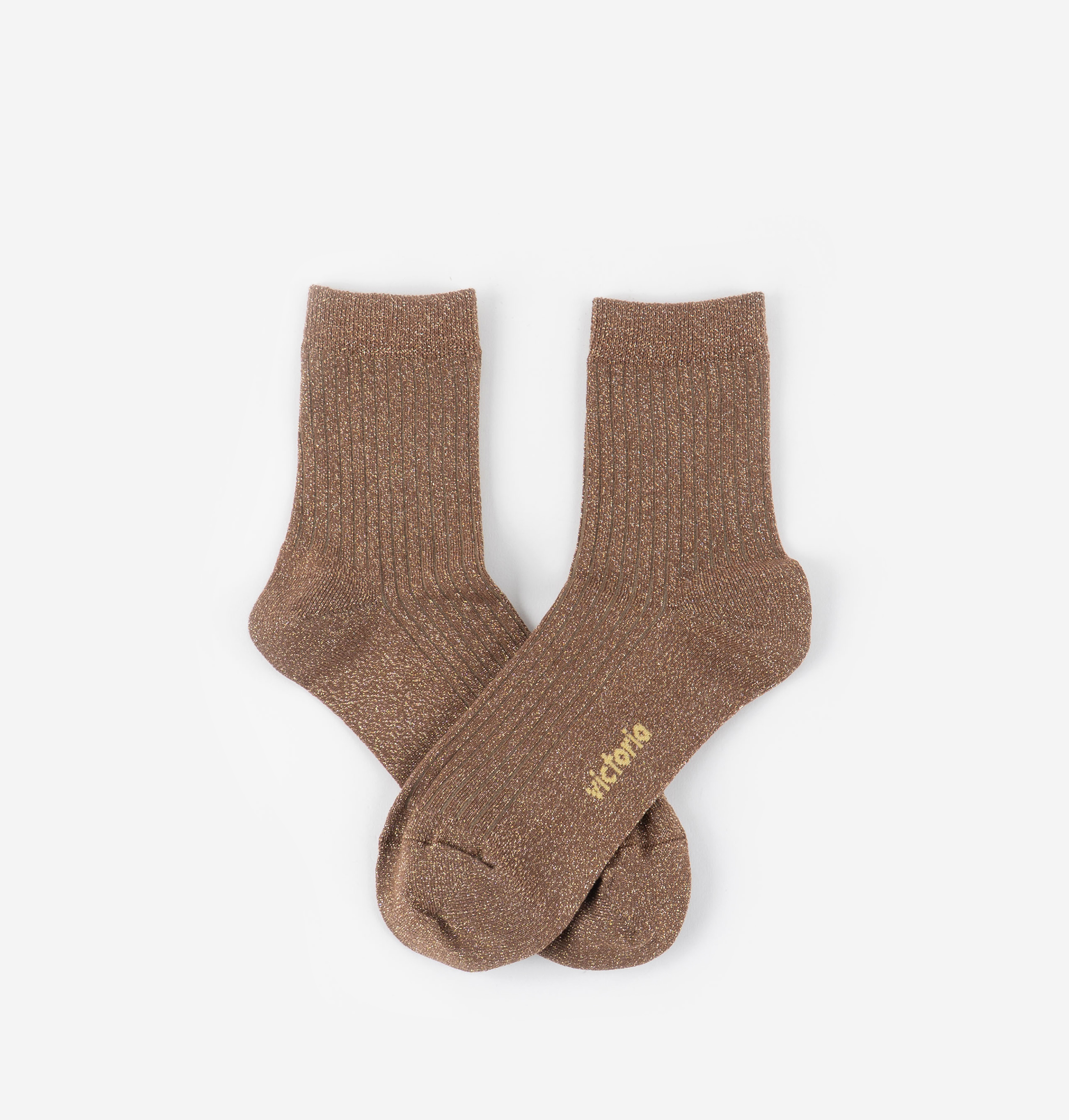 Lurex-Damensocke mit eingesticktem Markenlogo auf der Sohle. Perfekt kombinierbar mit unseren Sneakern.