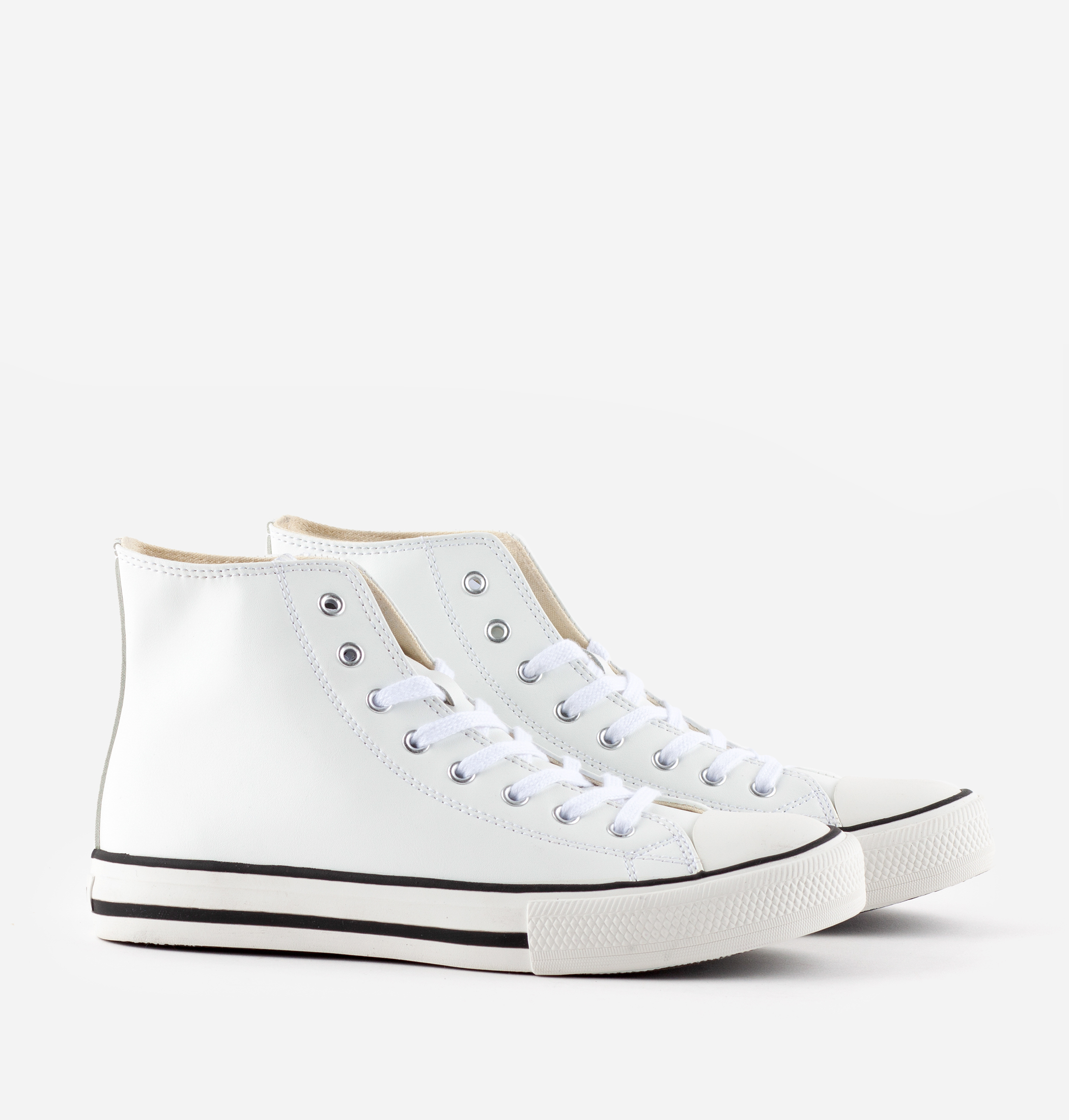High-Top-Sneakers für Damen aus Lederimitat. Mit einer 2,5 cm hohen Plateau-Sohle und einer Gummisohle mit verstärkter Spitze für mehr Widerstandsfähigkeit und Langlebigkeit.