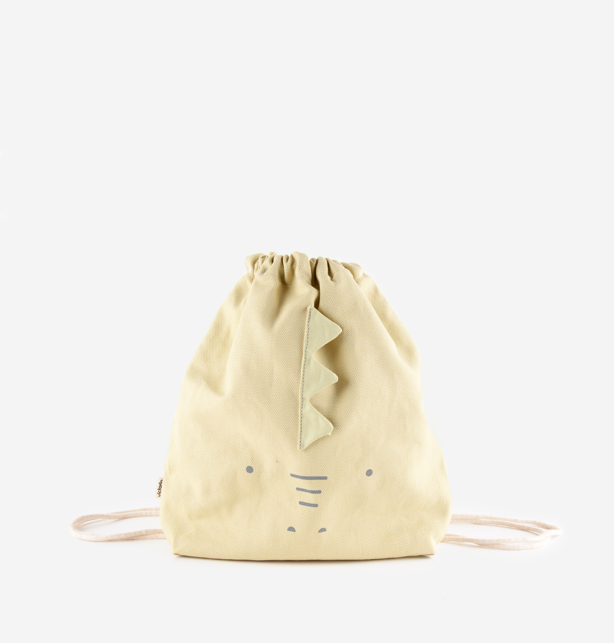 Animal shape mini backpack in 100% eco cotton made in Spain. Perfect for your little one's lunch, it fastens with cotton cord straps and is super lightweight and easy to wash.