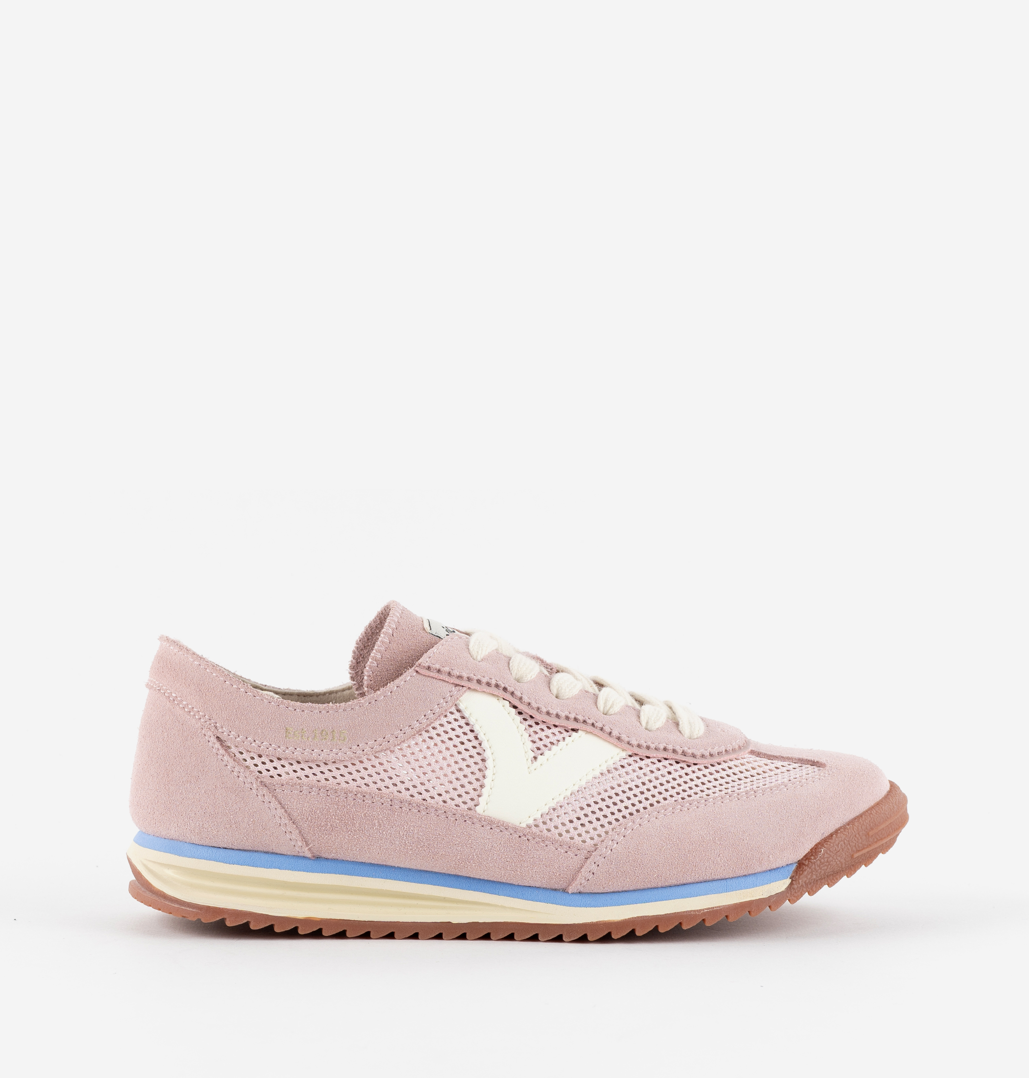 Unisex trainers made from mesh-style fabric with tonal suede overlay panels. Side victoria "V" in white faux leather, creating a contrast with the laces. Two-tone rubber sole with caramel-coloured serrated EVA tread.