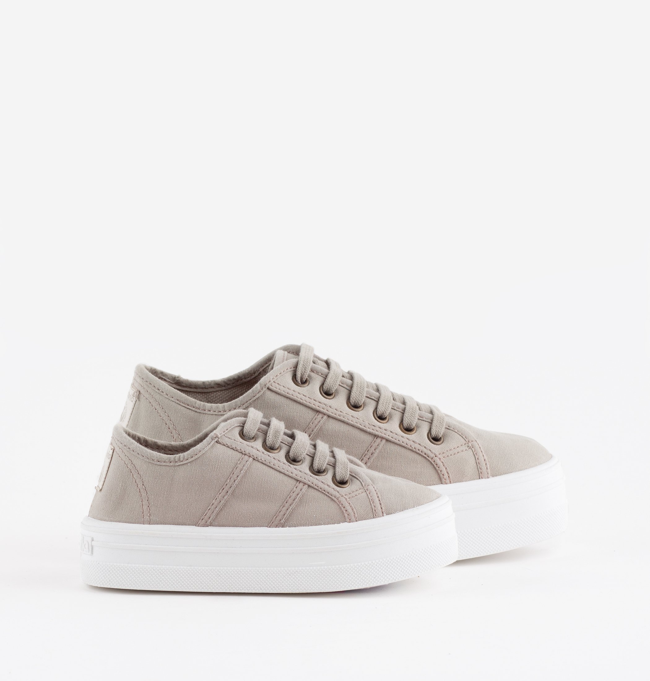 Plataforma Barcelona with canvas made from Dyeable Recycled Eco Cotton (DREC®) and a 4cm high sole, for which we have replaced the mineral oils for vegetable oils to make it more environmentally friendly.