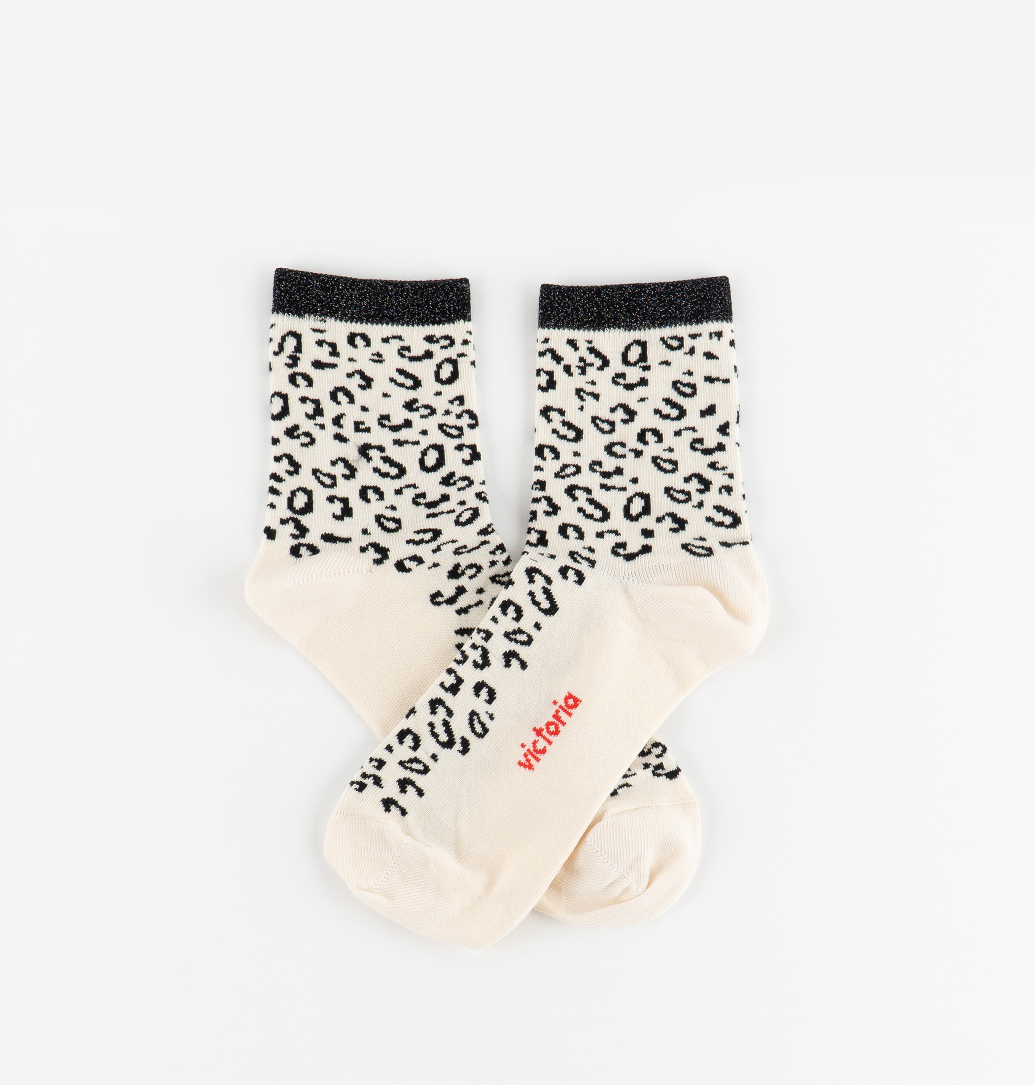 Cotton sock with lurex detail on the cuff and leopard pattern. Perfect to pair with our sneakers.