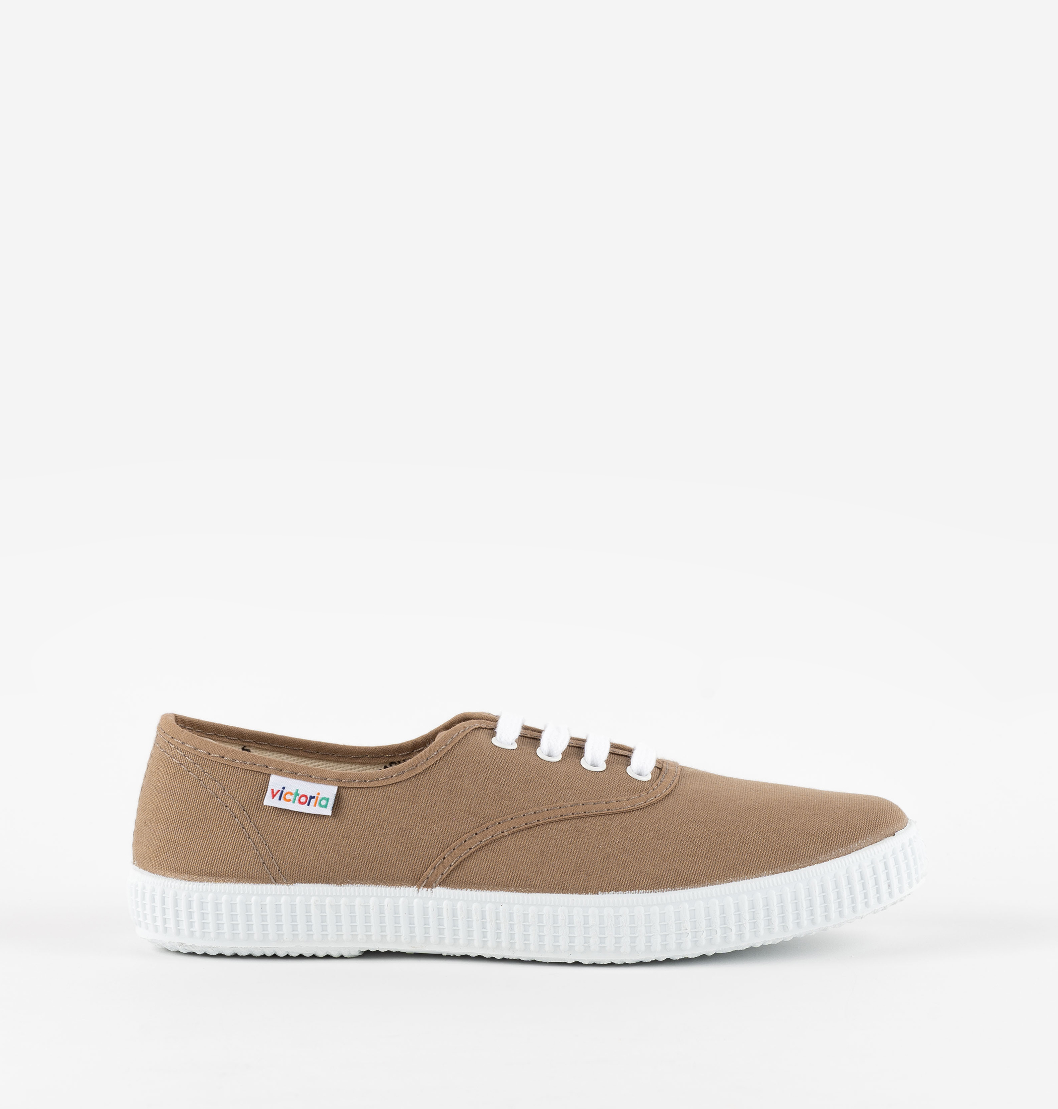 These canvas shoes are available in all sizes and are made from 100% organic cotton, cultivated, spun and woven in Spain. The vulcanised natural rubber sole adds durability and flexibility and features a distinctive victoria label on the side.