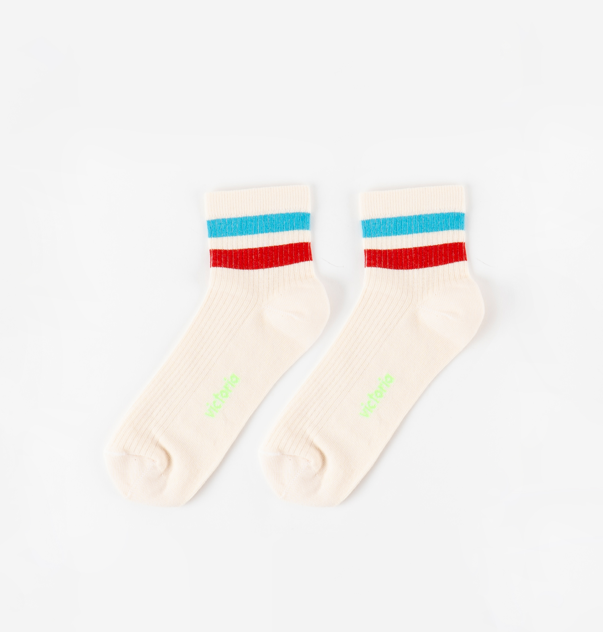 Women's cotton socks with retro stripe design in different color combinations. Standard height. Breathable and adaptable.