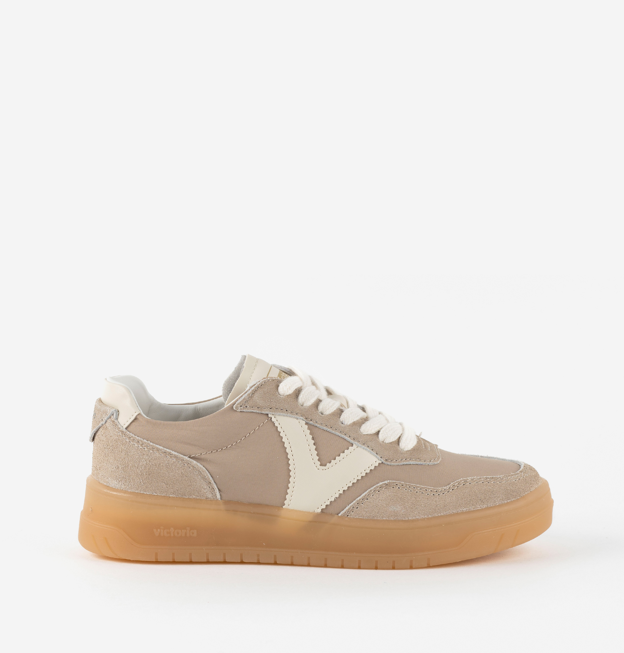 Unisex trainers made from nylon with tonal suede panels and a light washed finish. Contrasting side victoria "V" in white faux leather. Translucent caramel-coloured TPR sole.