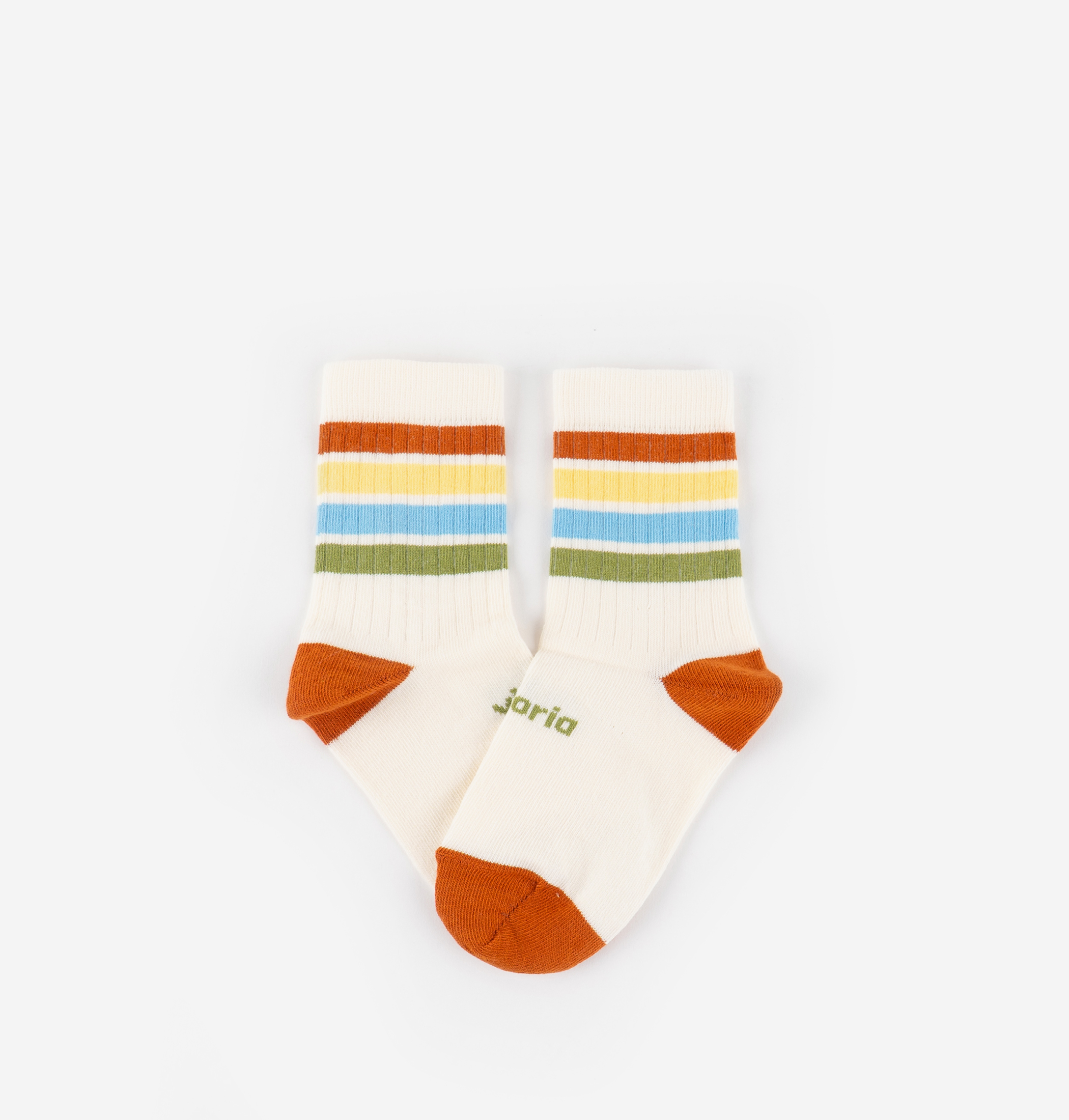 Barefoot cotton socks for kids with multicolor stripe detail and embroidered brand logo on the instep. Perfect to pair with our trainers.