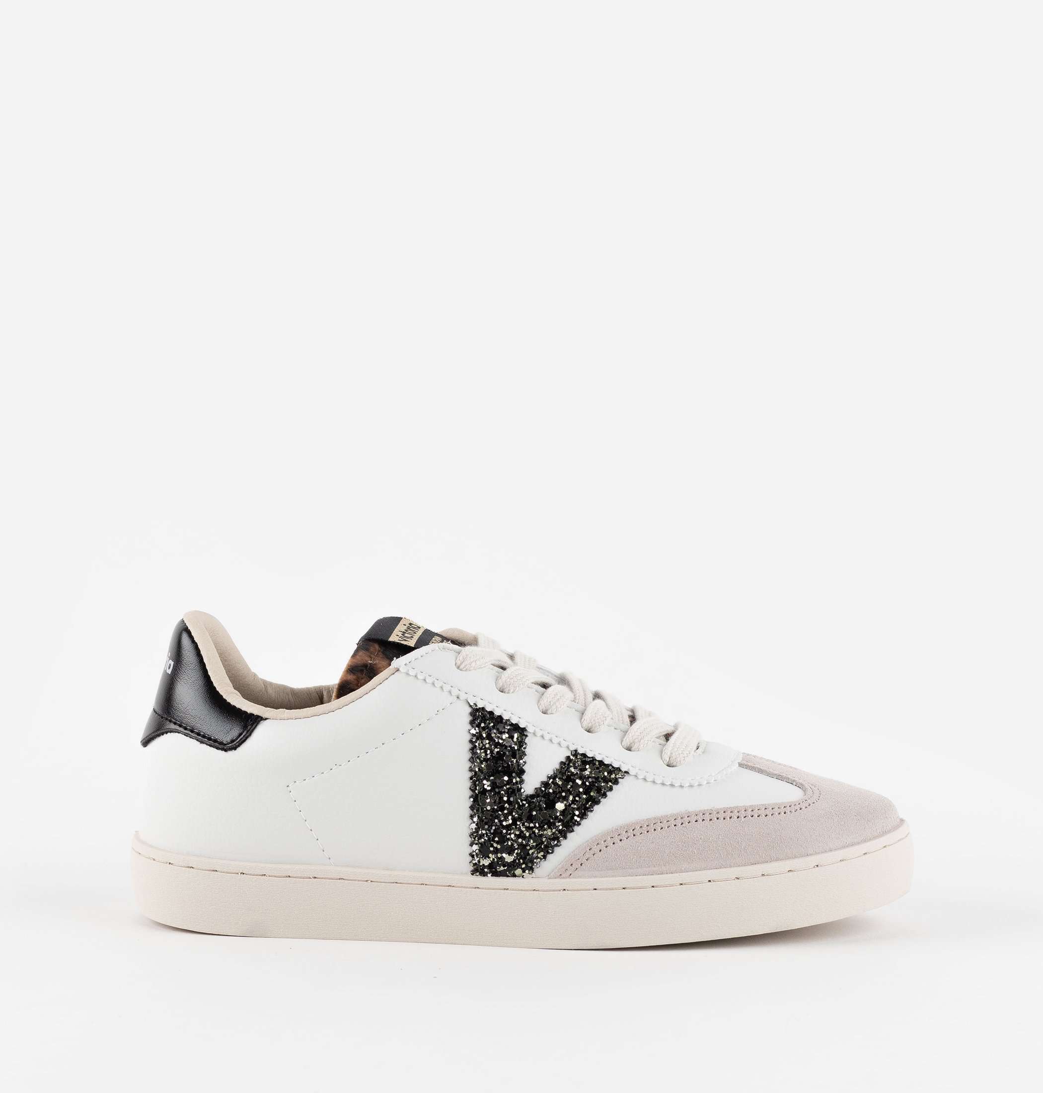 Women's sneakers made in Spain from embossed faux leather and a suede toe cap. Textured glitter on the side V, and animal print detail on the tongue. Tone-on-tone lace-up fastening and new cyclist cut on the toe. Their slightly toasted sole is made from vegetable oils instead of mineral oils, thus reducing environmental impact. They also include a more ergonomic insole made from recycled materials, providing superior comfort with every step.