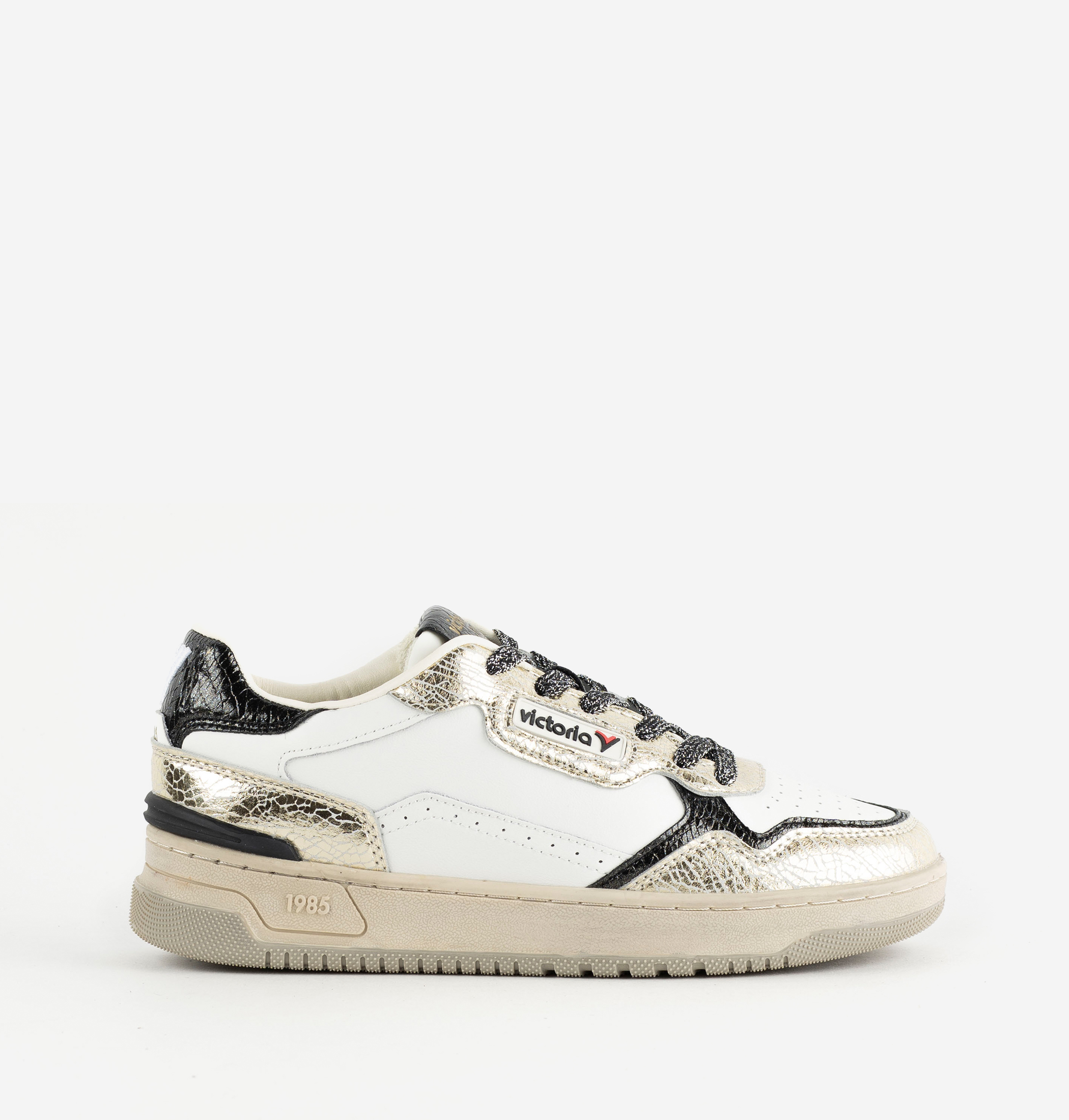 The women's C80-METAL sneakers from the 1985 collection combine style, comfort, and shine thanks to their metallic pieces. Made with leather and featuring the 80's Victoria logo framed on the side. Heel stabilizer and slightly toasted sole. Includes an ergonomic insole that adapts to the shape of the foot, providing a comfortable feel.