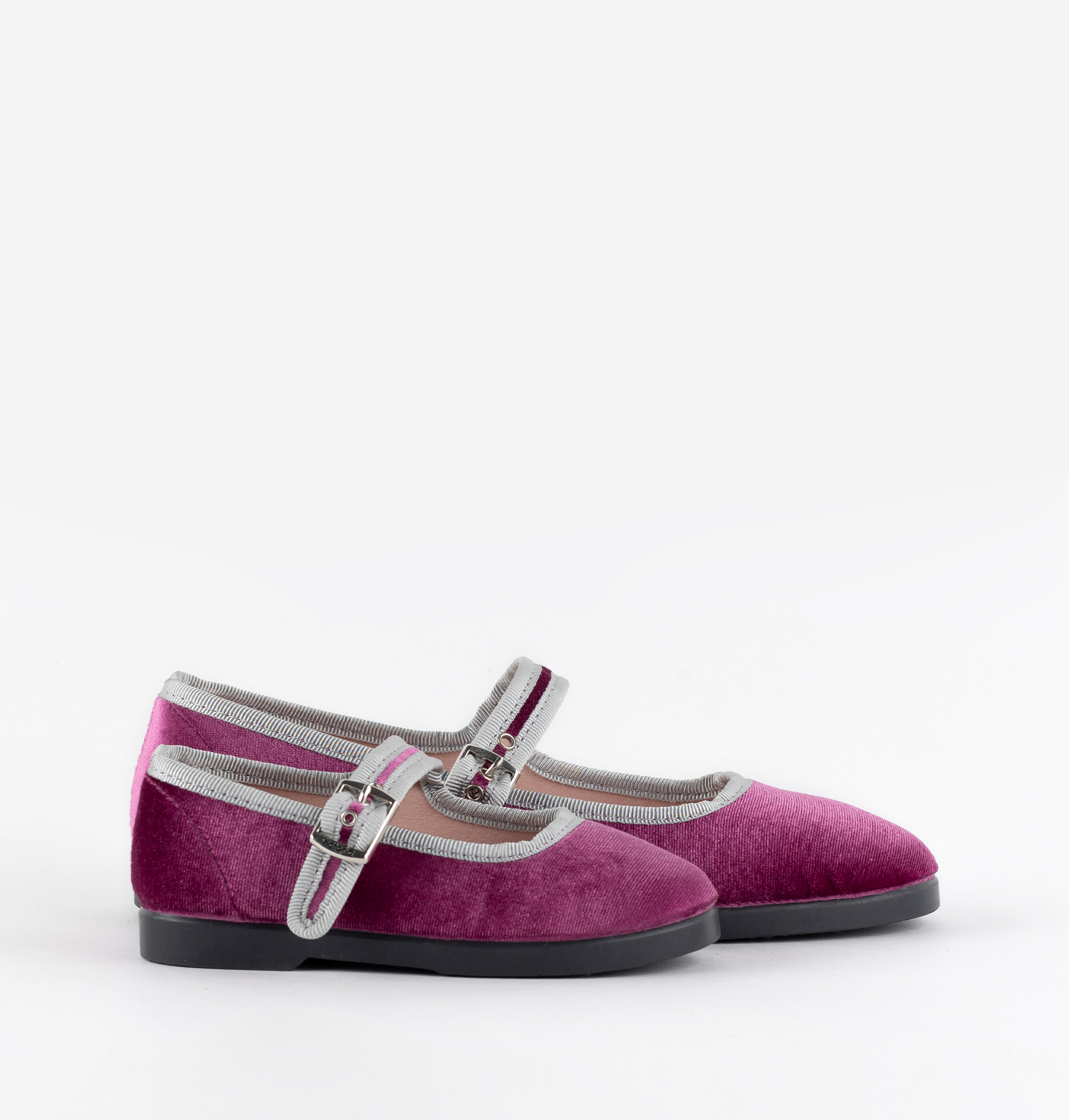 Velvet Mary Janes for women and girls made in Spain. Rectangular buckle closure, Victoria label on the side, and comfortable vulcanized rubber sole.