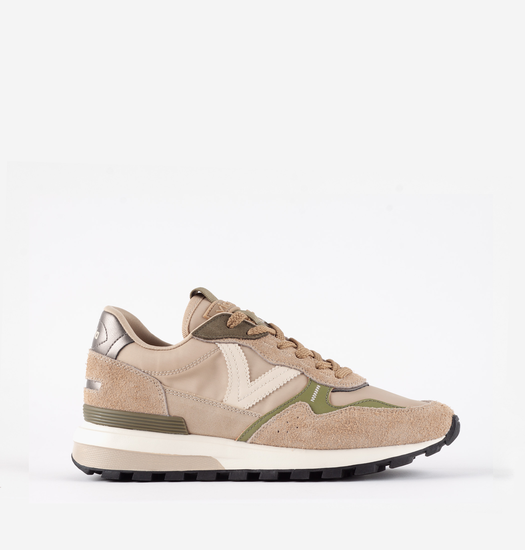 Sneakers for women made from soft nylon with tone-on-tone suede panels and synthetic details. Side V in white and metallic heel piece. Two-tone sole and embossed logo tread with non-slip effect for better grip. Heel stabilizer. They also include a removable ergonomic and very comfortable insole.
