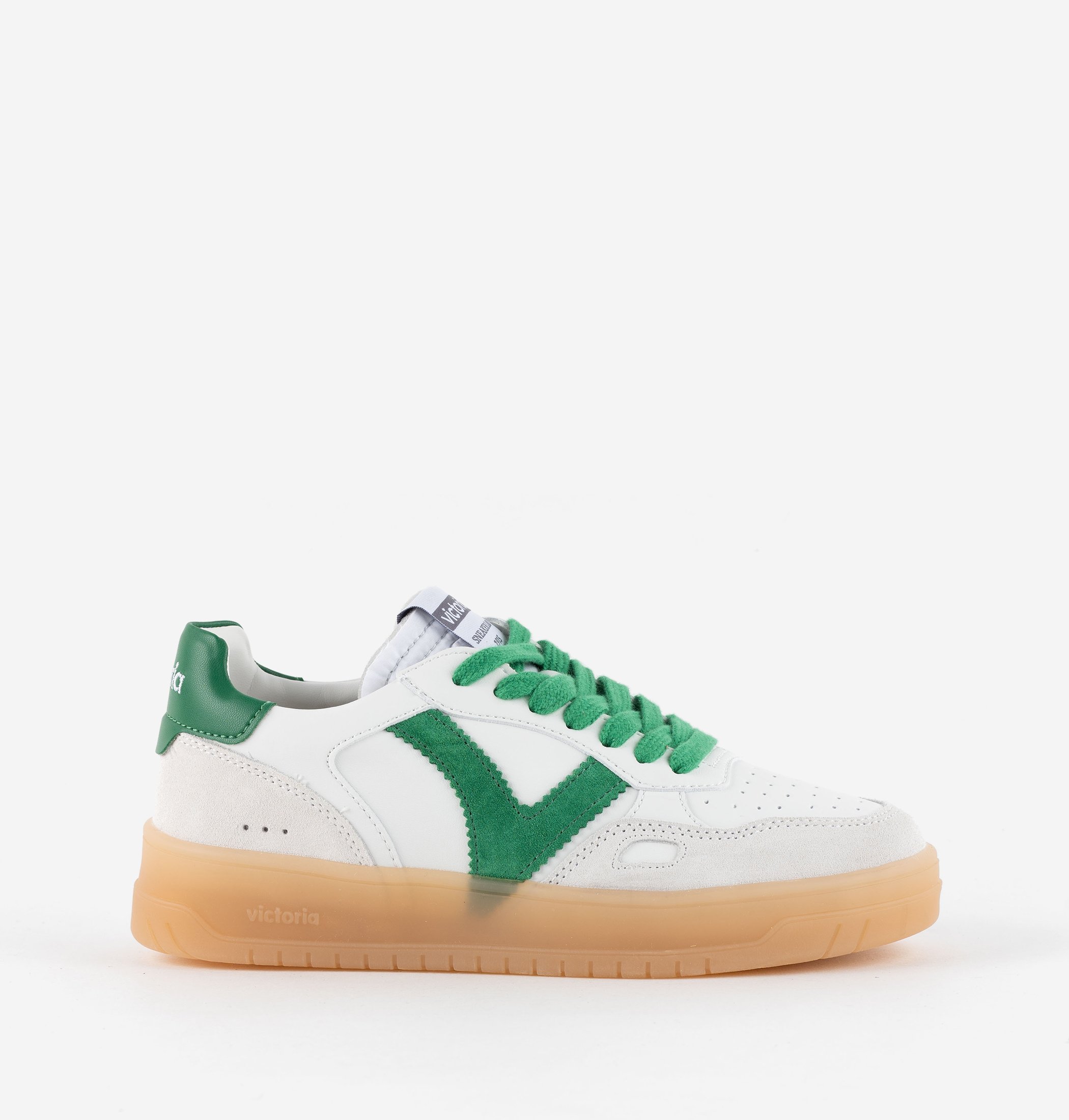 Unisex trainers with colored panels and caramel sole