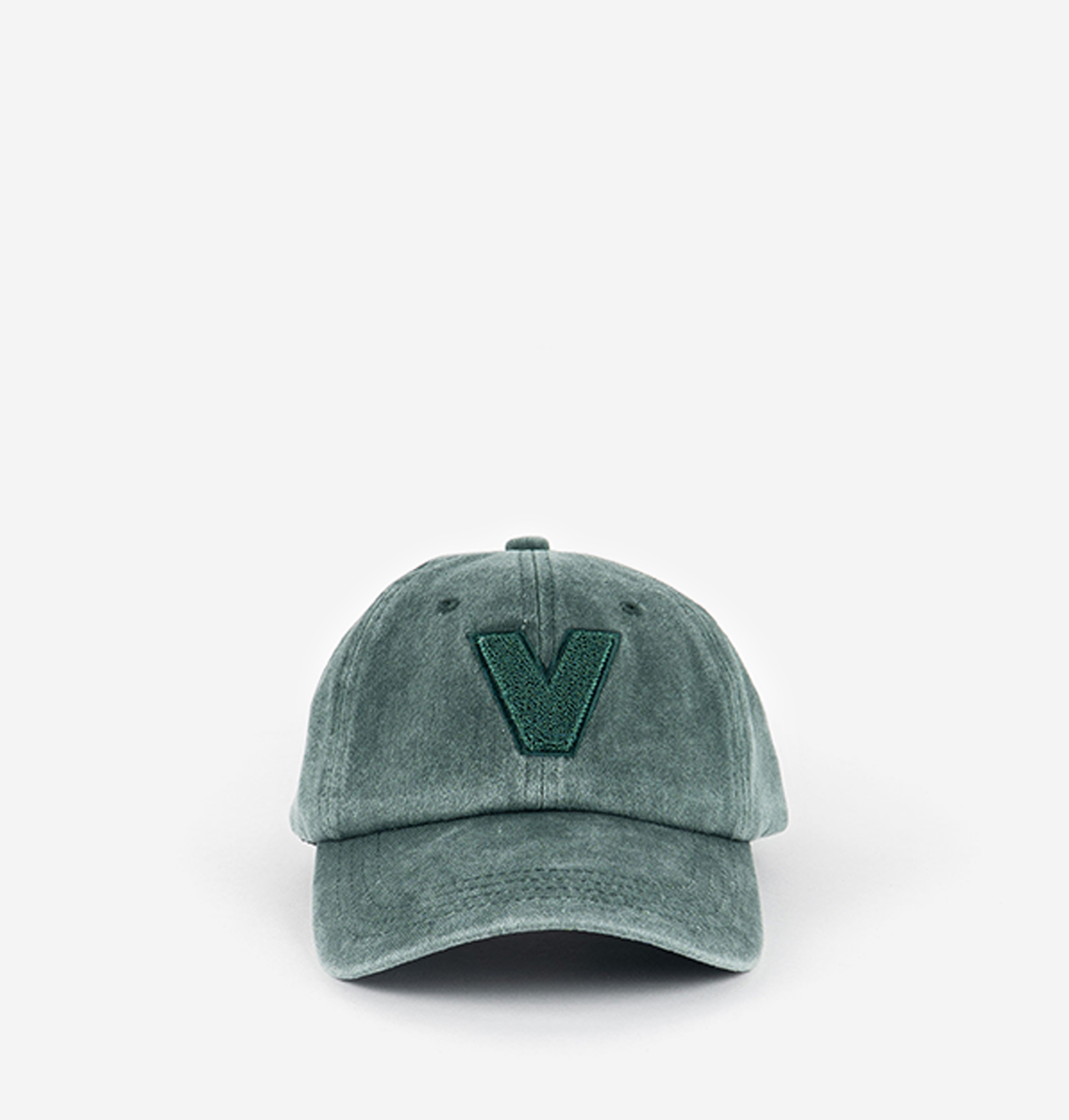 Washed cotton cap for women with visor and adjustable fastening. Embroidered detail featuring the victoria "V".