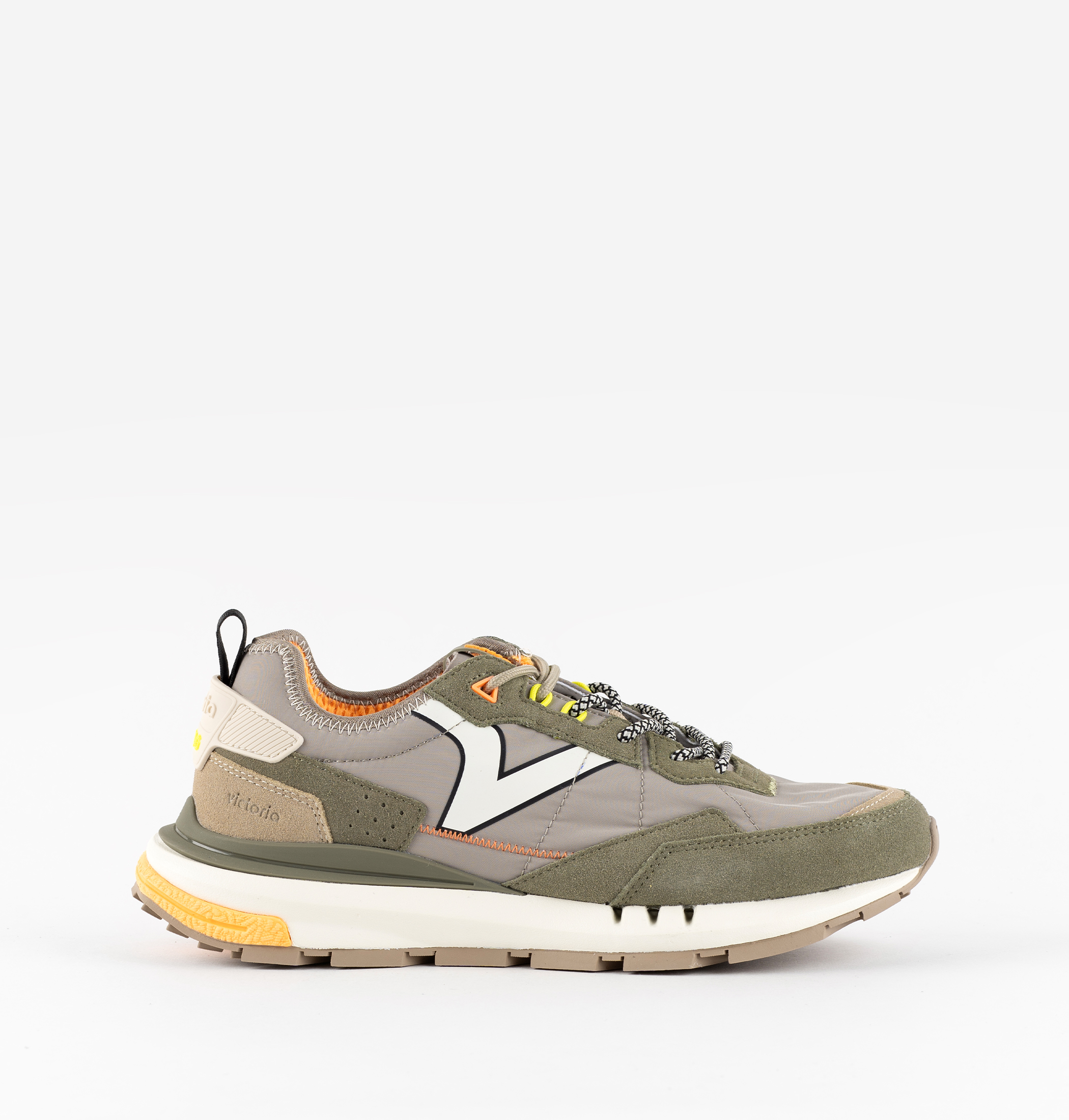 Men's trainers made from nylon with suede overlays and PU detailing. Retro victoria V on the side in TPU transfer. Fastened with a double set of laces. Phylon sole with a rubber lug tread and heel stabiliser. Also includes an ergonomic insole that adapts to the shape of the foot for an added feeling of comfort, and a back pull tab for easier fitting.