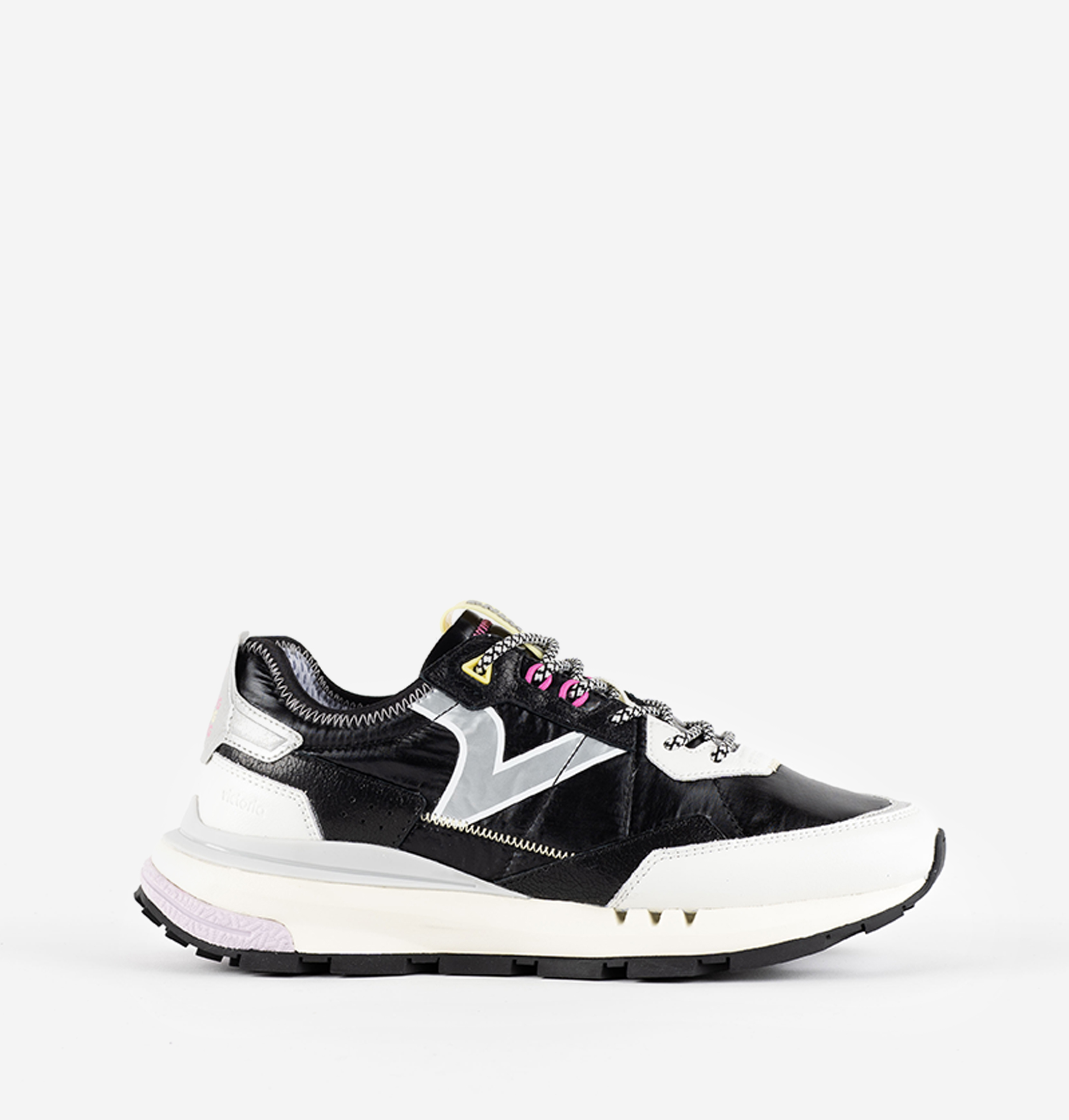 Women's trainers made from laminated "METAL" nylon with suede overlays and PU detailing. Retro victoria V on the side in TPU transfer. Phylon sole with a rubber lug tread and heel stabiliser. Also includes an ergonomic insole that adapts to the shape of the foot for an added feeling of comfort.