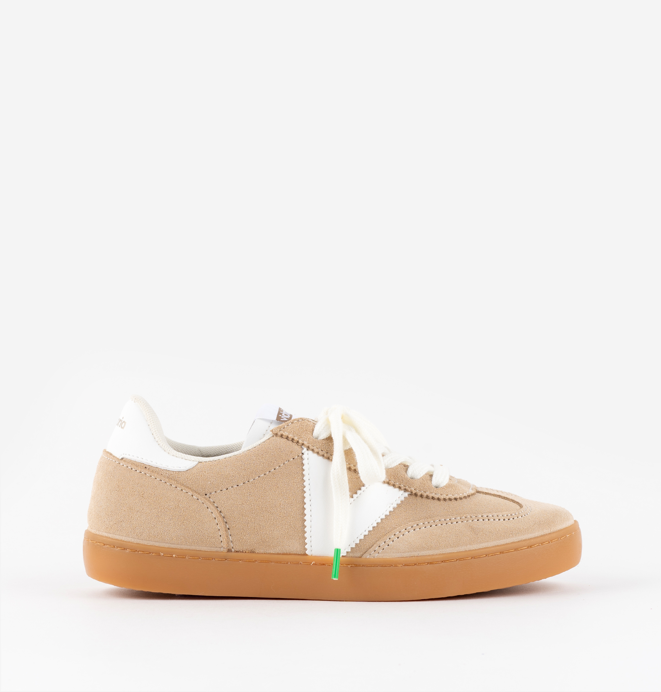 Unisex trainers made in Spain from multicoloured suede. Contrasting white side victoria "V" and heel panel. White lace-up fastening and contrast stitching. Translucent caramel-coloured T.R. sole.