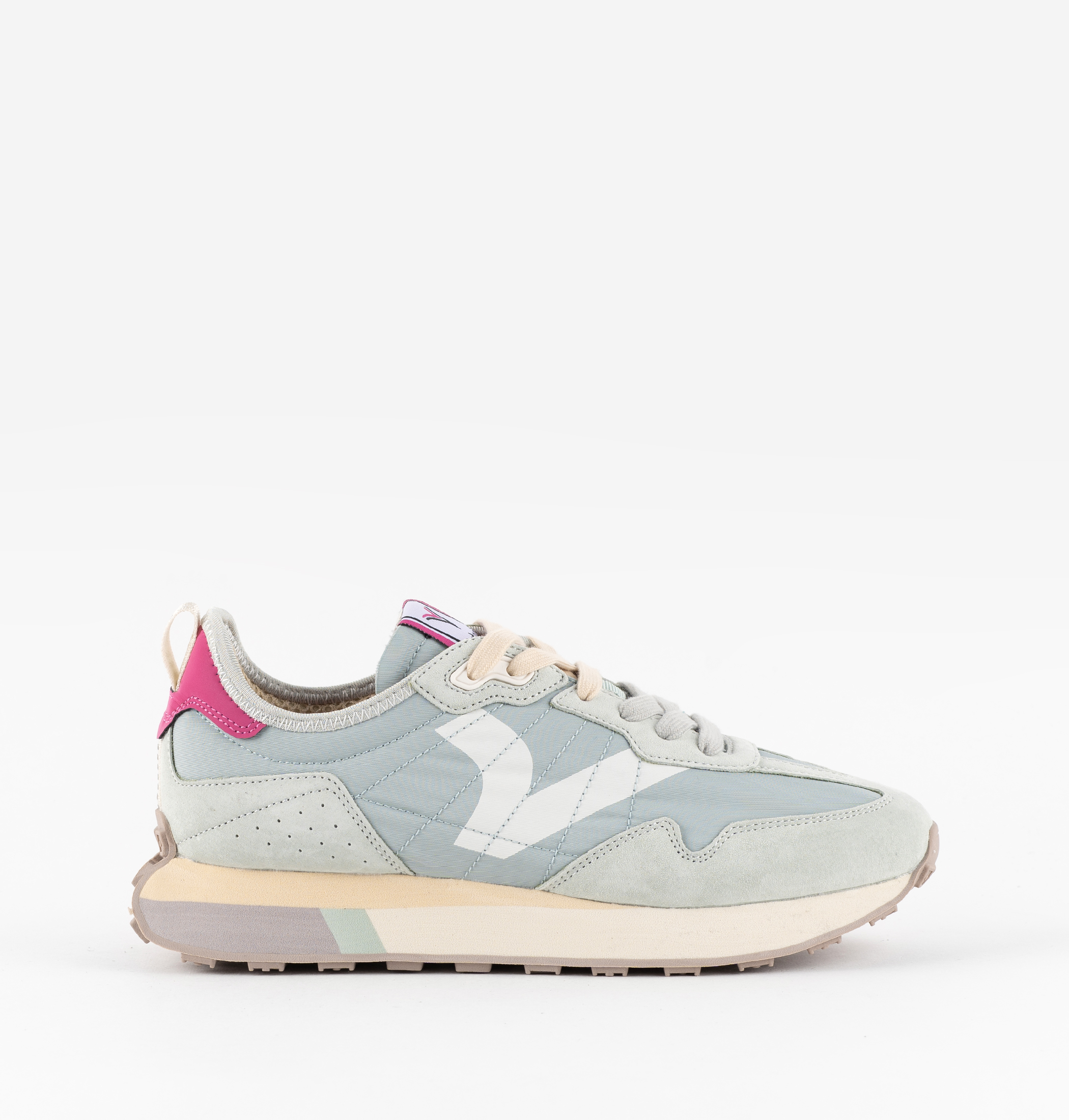 Unisex trainers made from nylon with leather overlays and PU detailing. Retro victoria V on the side in TPU transfer. Fastened with a double set of laces. Three-tone EVA sole with a lug tread. Also includes an ergonomic insole that adapts to the shape of the foot for an added feeling of comfort, and a back pull tab for easier fitting.