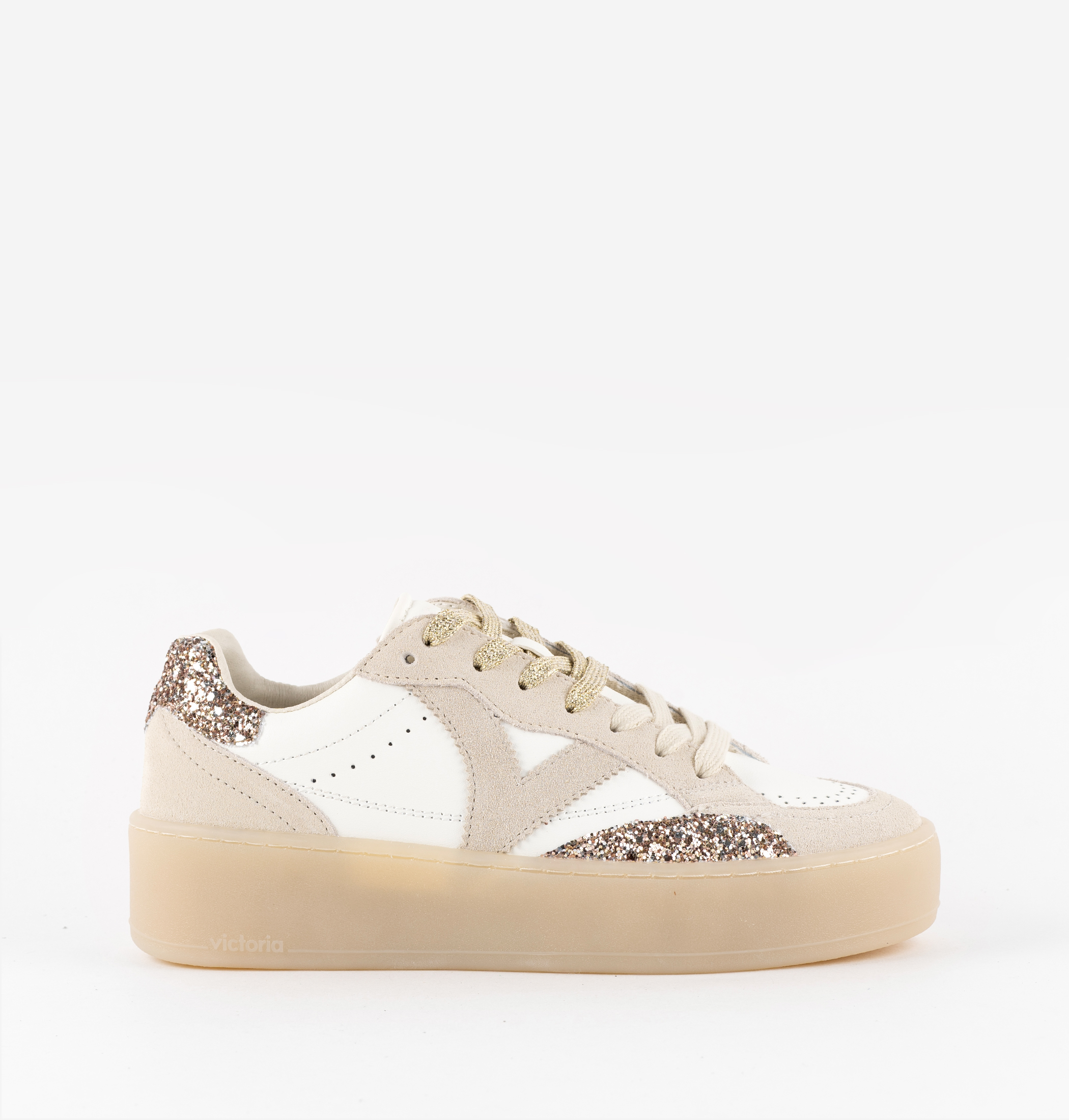 Women's trainers with glitter panels and caramel sole