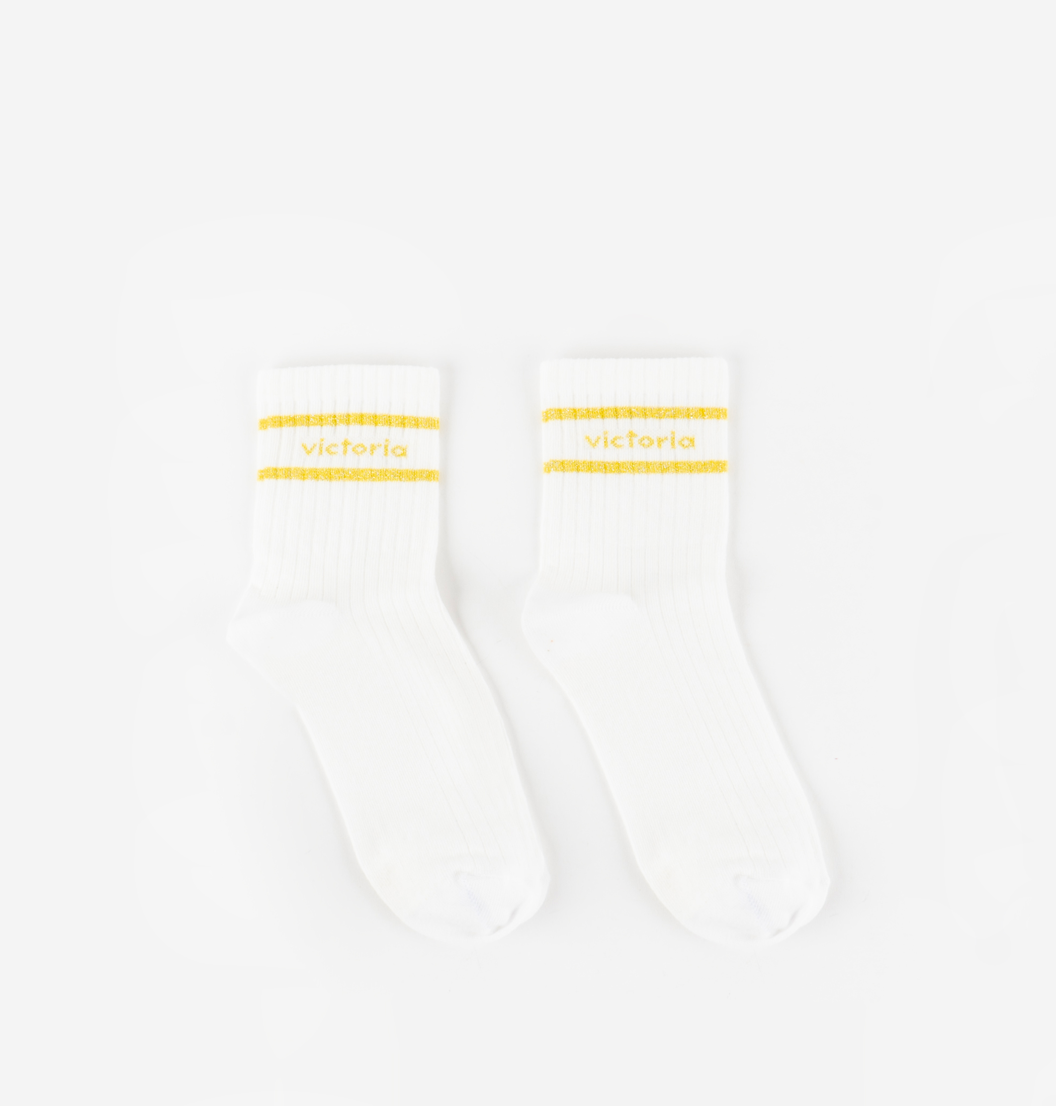 Women's white cotton socks with lurex detail in different colors. Standard height. Breathable and adaptable.