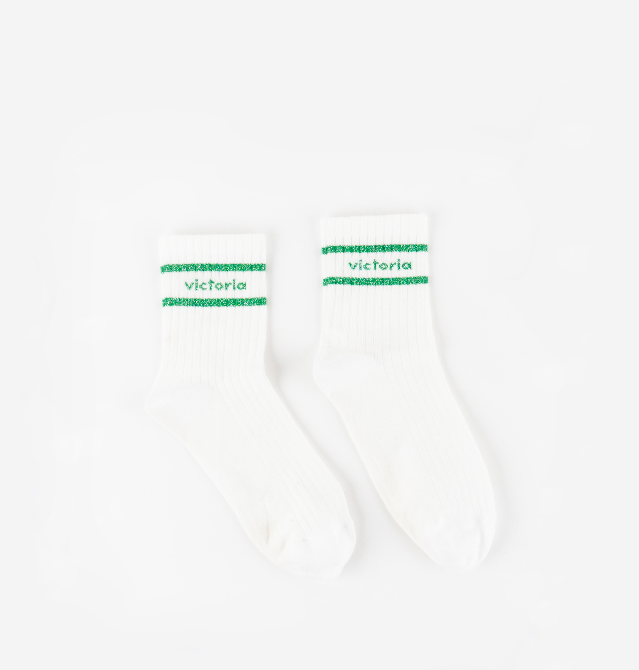 Women's white cotton socks with lurex detail in different colors. Standard height. Breathable and adaptable.