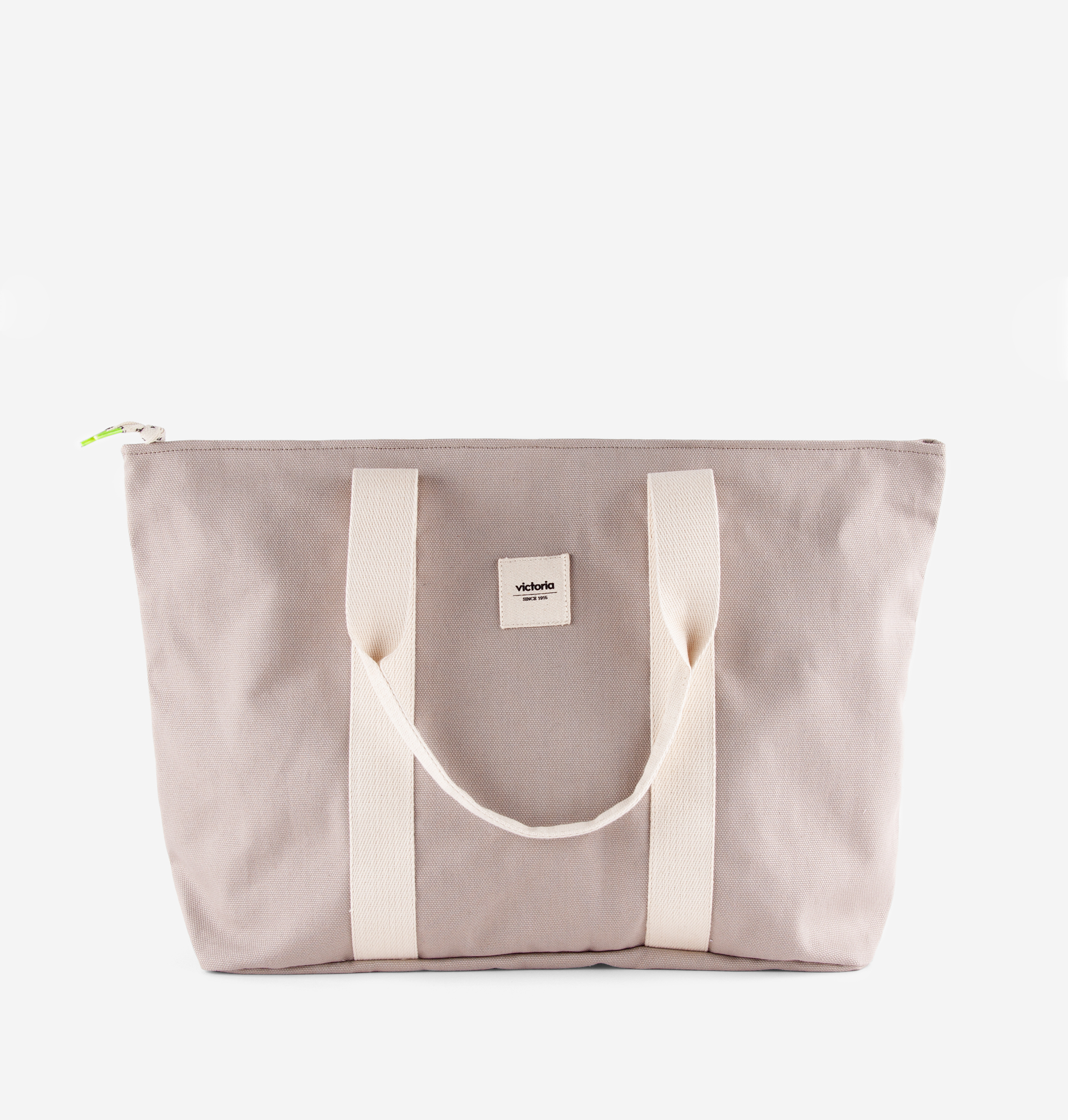 Large shopper bag made in eco-friendly 100% cotton canvas, with strong cotton handles and a clip fastening. Lightweight and easy to clean, made in Spain.