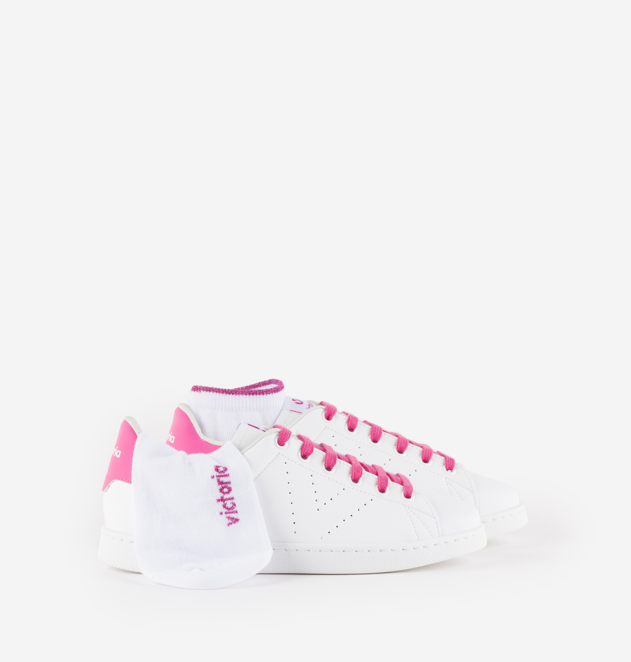Pack of two pairs of white breathable and comfortable cotton ankle socks, with a victoria logo and decorative double lurex stripe at the cuff. Made in Spain.