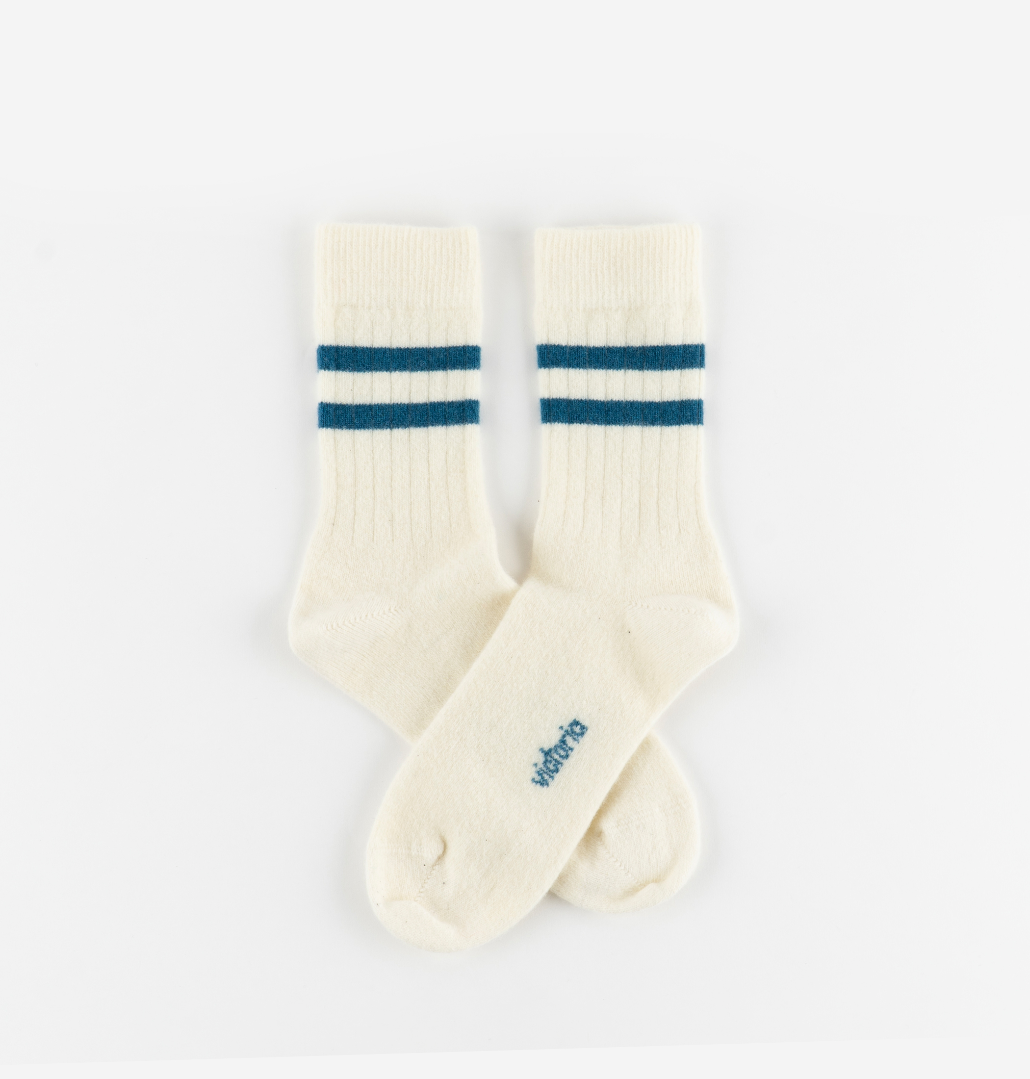 Natural cashmere sock with stripe detail. Perfect to pair with our sneakers.