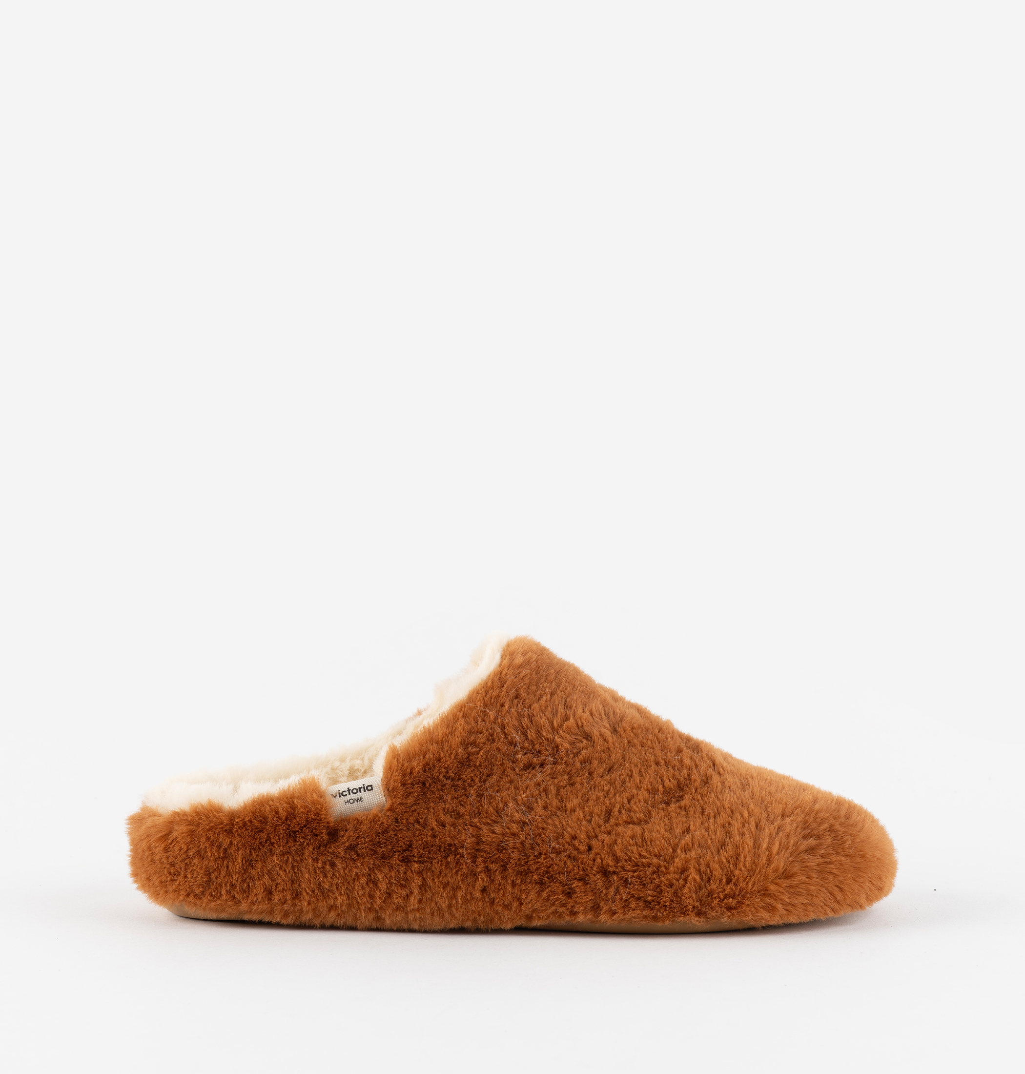 Open-back slippers for women made in Spain from soft hair. Contrasting interior. Lateral victoria label. They feature an interior insole also covered in hair, providing warmth and comfort. Comfortable vulcanized rubber sole.