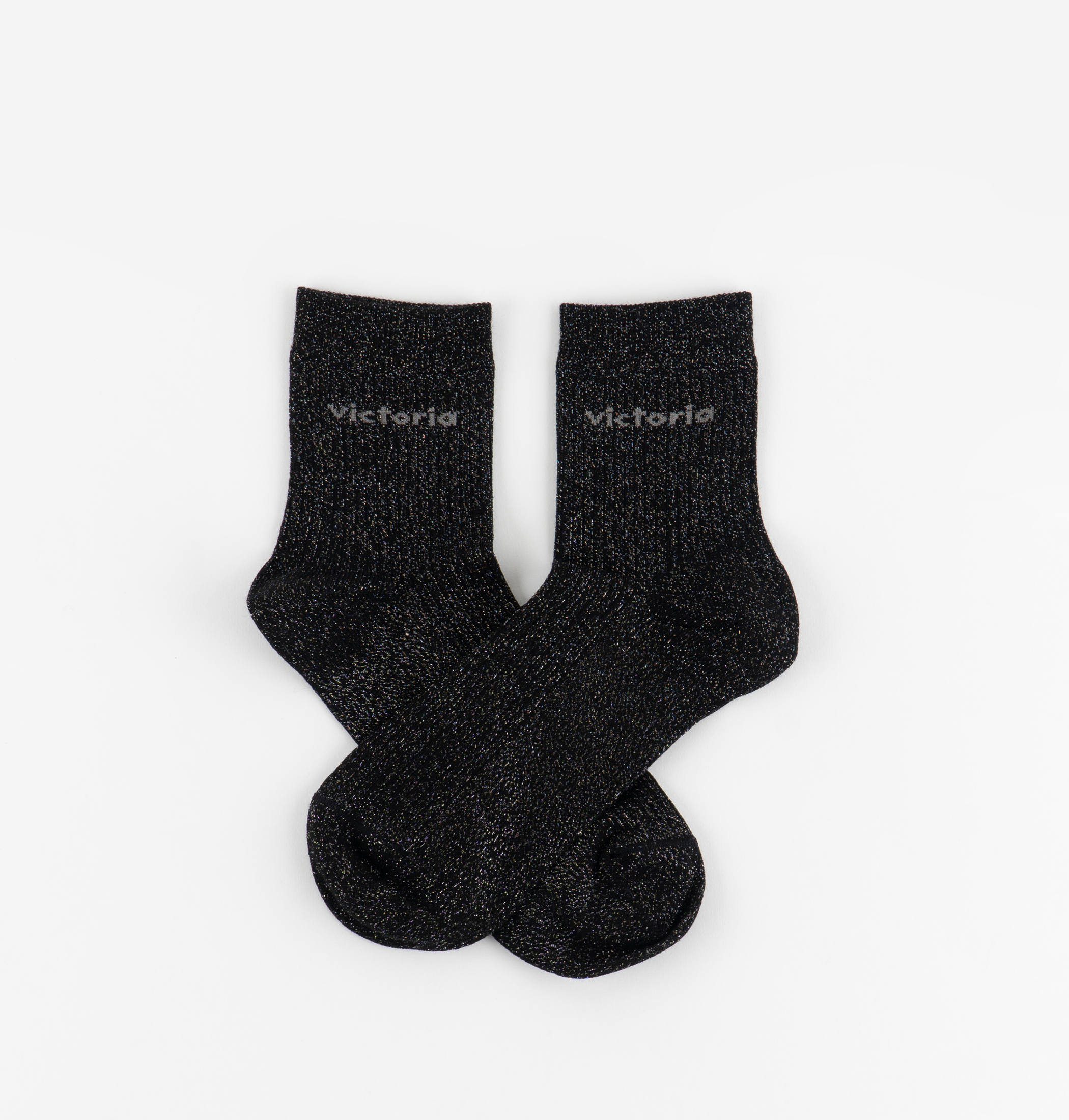 Plain lurex sock with Victoria embroidery. Perfect to pair with our sneakers.