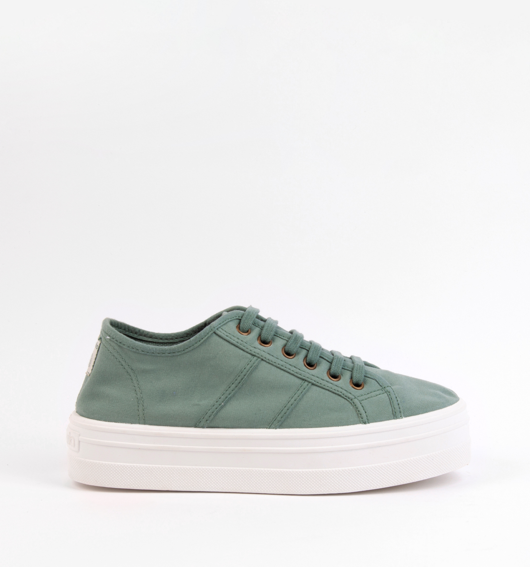 Plataforma Barcelona with canvas made from Dyeable Recycled Eco Cotton (DREC®) and a 4cm high sole, for which we have replaced the mineral oils for vegetable oils to make it more environmentally friendly.