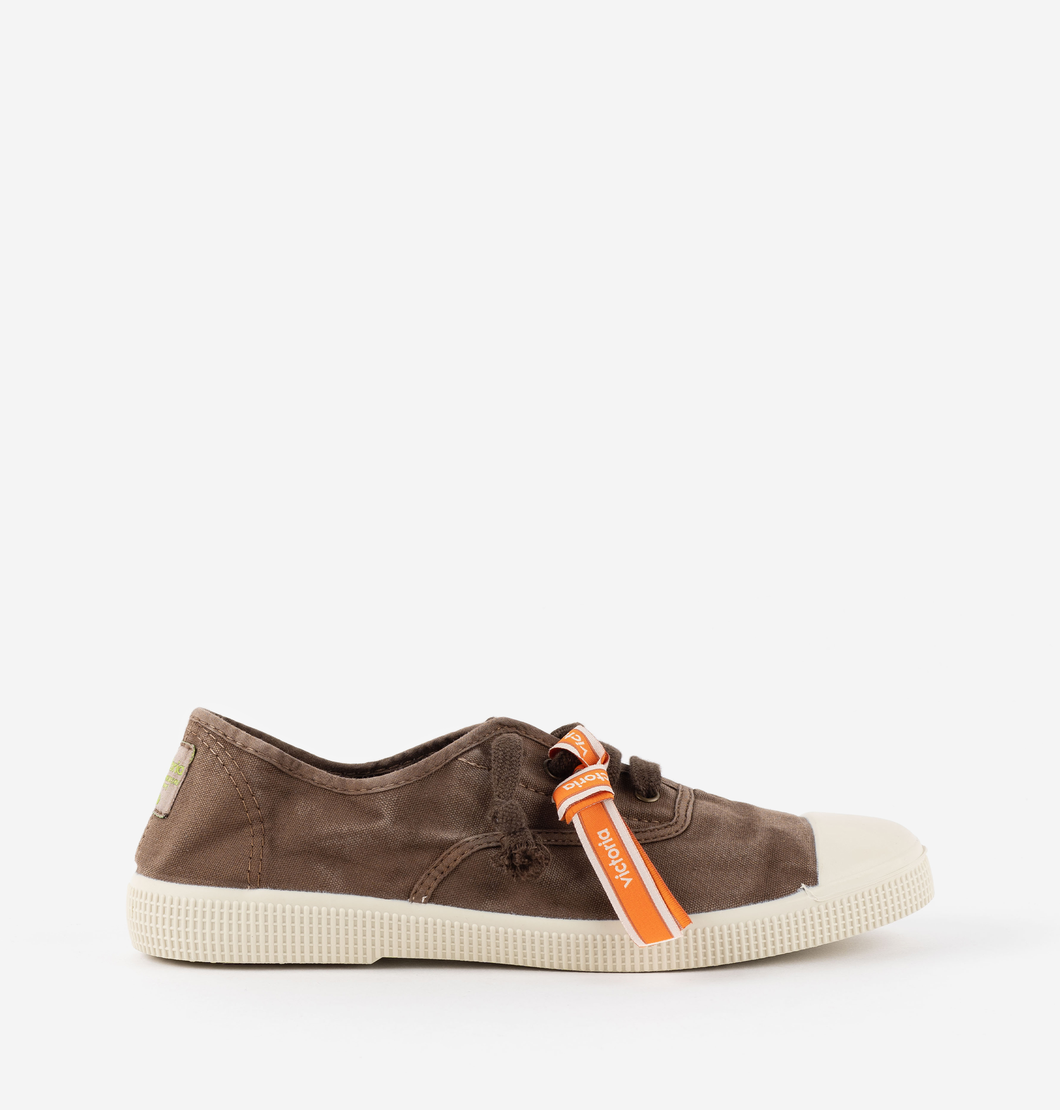 Estas zapatillas de lona para mujer y hombre están fabricadas en una combinación única de algodón reciclado DREC® (Dyeable Recycled Eco Cotton) y algodón ecológico cultivado, hilado y tejido en España. Se presentan con un ligero efecto envejecido. Incorporan cierre con cordones al tono e incluyen como accesorio una pulsera tipo festival con el logotipo de victoria. Cómoda suela de caucho vulcanizado con refuerzo en la puntera, para una mayor resistencia y durabilidad.
