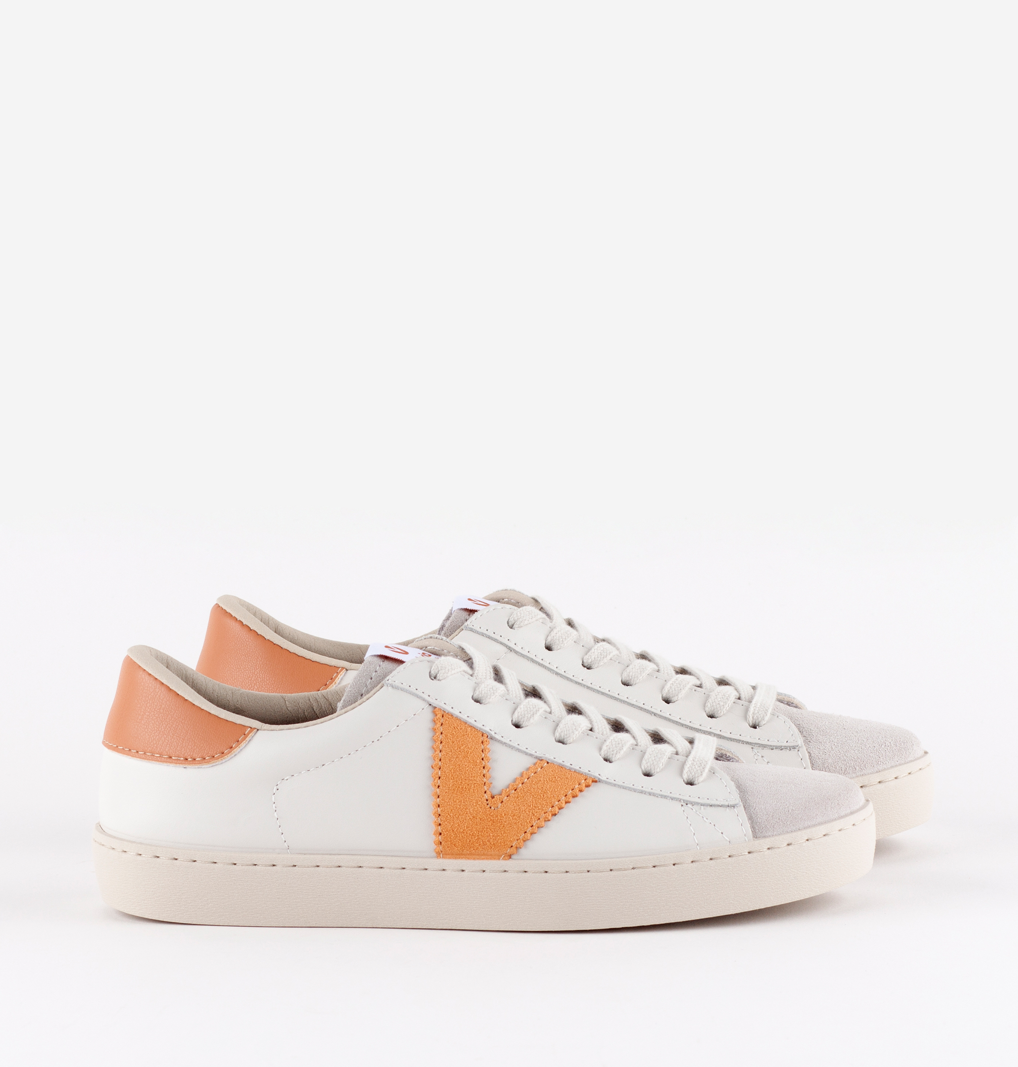 Detalles de color en la V del lateral y en la pieza trasera, y puntera en serraje. Su suela ligeramente tostada está compuesta por aceites vegetales en lugar de minerales reduciendo así el impacto medioambiental. Además, incluyen una plantilla más ergonómica, confeccionada a partir de materiales reciclados, proporcionando un confort superior en cada paso.