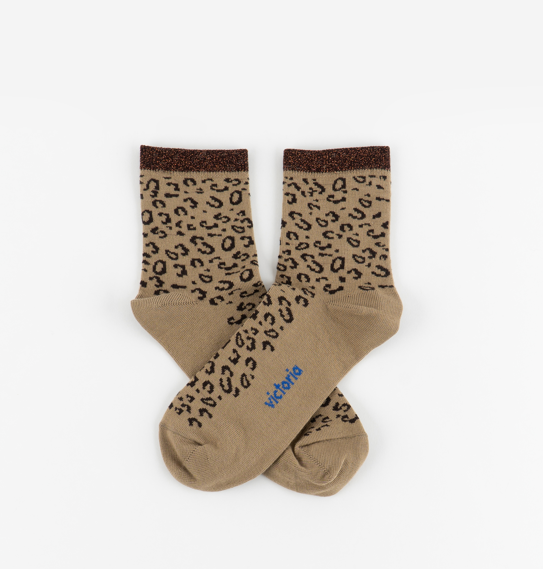 Calcetín de algodón con detalle lurex en el puño y motivo de leopardo. Perfecto para combinar con nuestras sneakers.