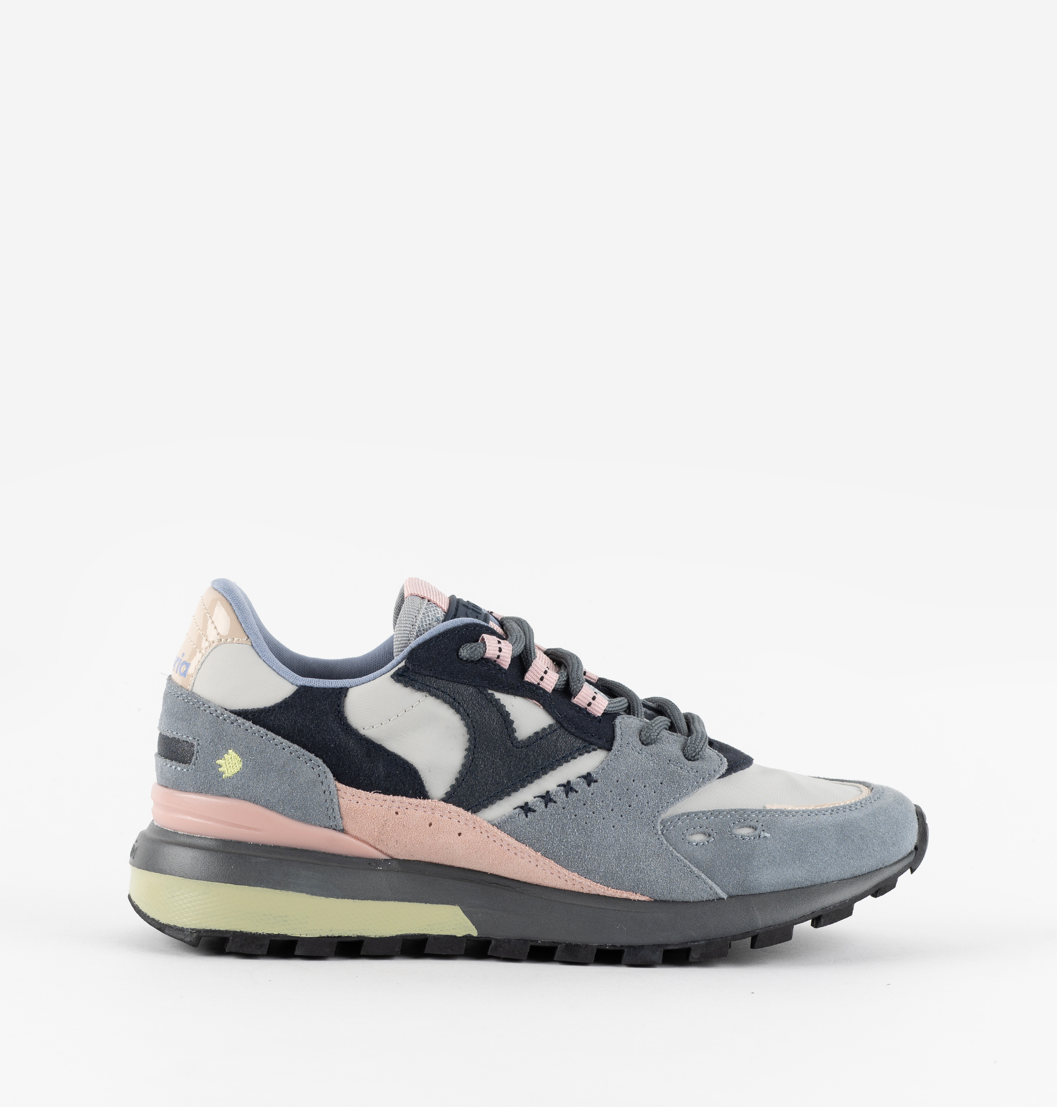 Sneakers para mujer confeccionadas en nylon con piezas en serraje al tono y detalles sintéticos. Cierre mediante cordones redondos al tono. Suela bicolor y patín con grabados del logo en relieve antideslizante que favorece un mejor agarre. Estabilizador en el talón. Incluyen además una plantilla extraíble ergonómica y muy confortable.