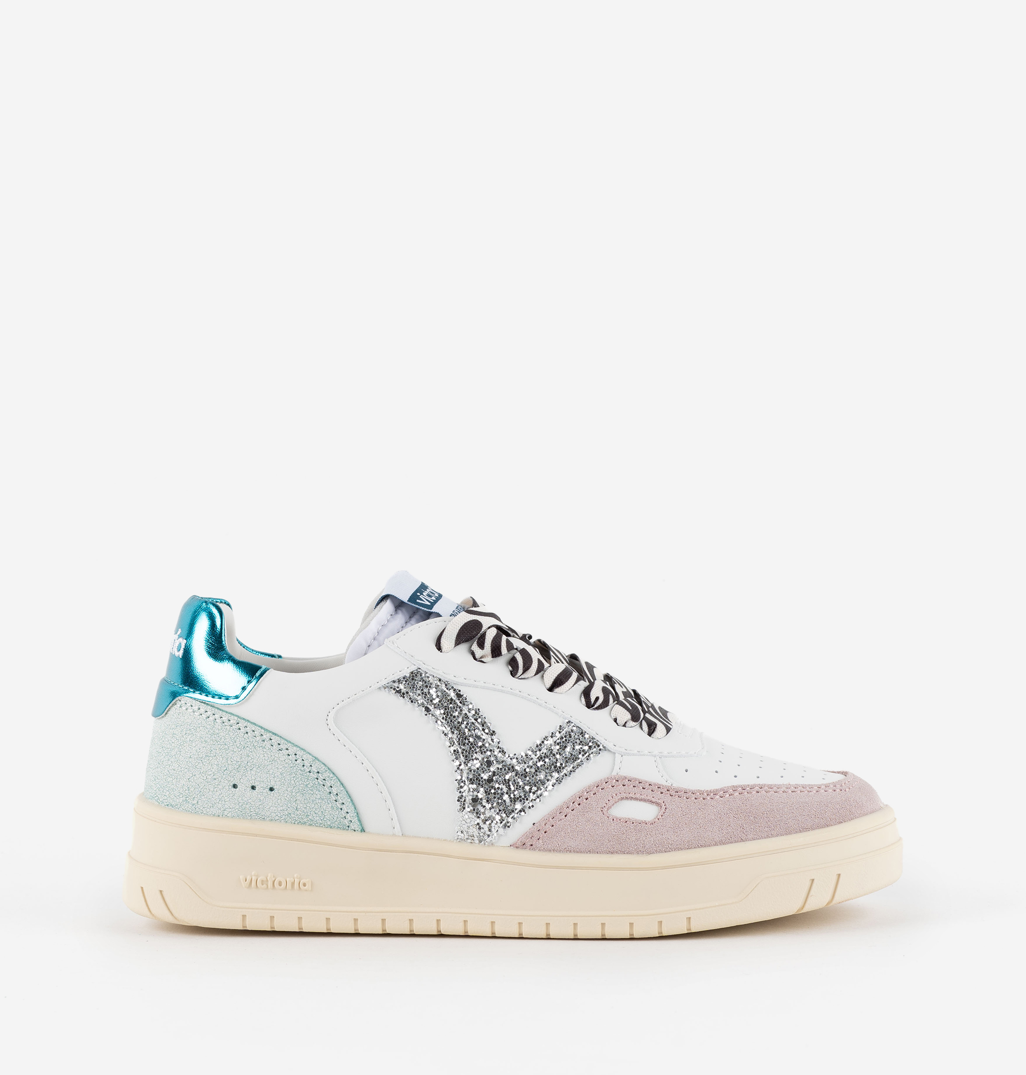 Zapatillas deportivas para mujer con piezas glitter y suela tostada
