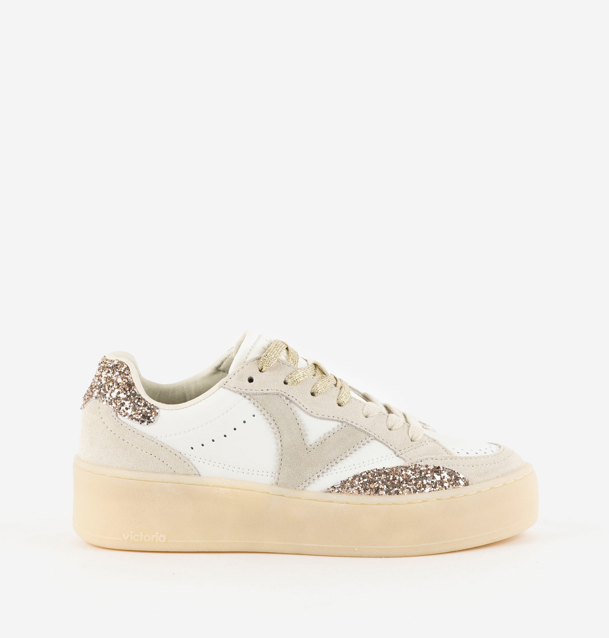 Baskets pour femme avec pièces pailletées et semelle caramel