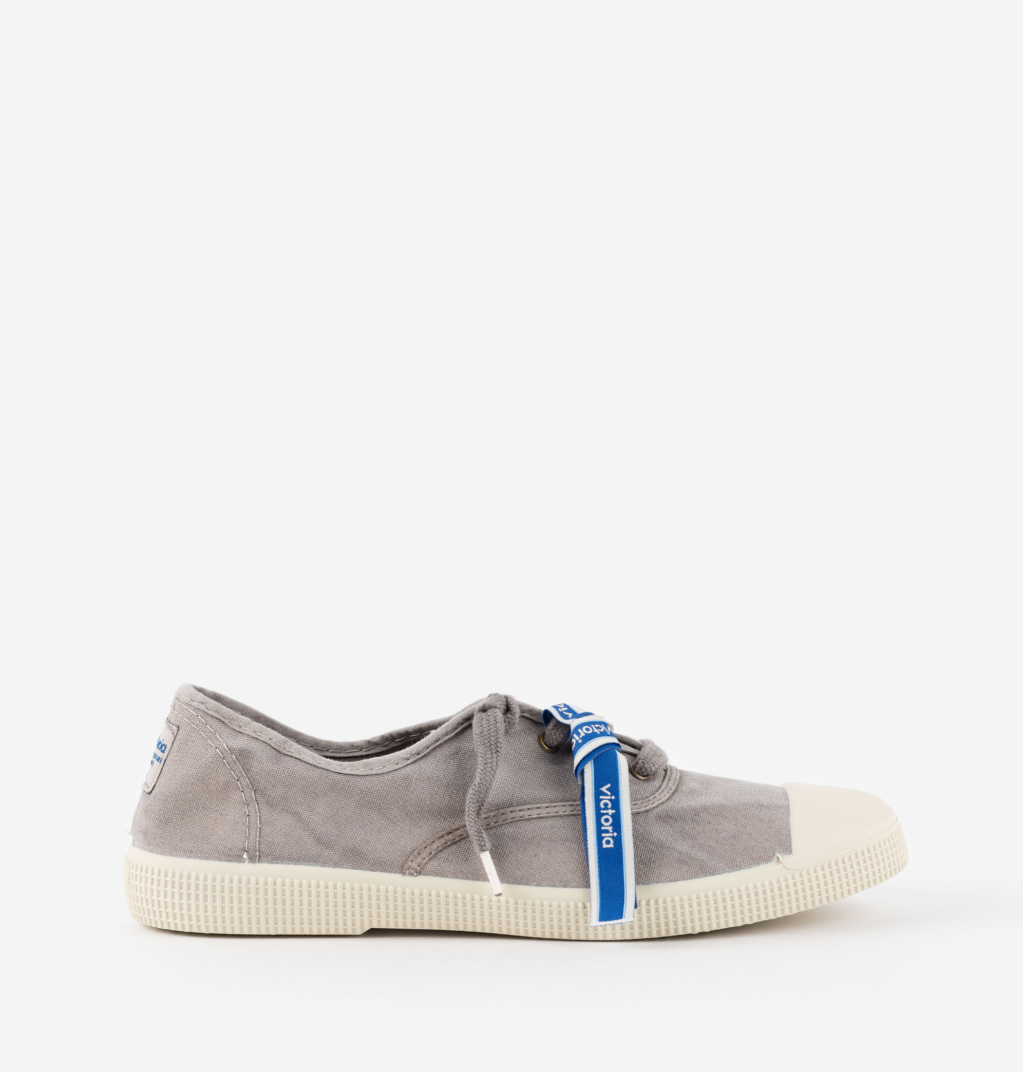 Estas sapatilhas de lona para mulher e homem são fabricadas numa combinação única de algodão reciclado DREC® (Dyeable Recycled Eco Cotton) e algodão ecológico cultivado, fiado e tecido em Espanha. Apresentam um ligeiro efeito envelhecido. Incorporam fecho com cordões a condizer e incluem como acessório uma pulseira tipo festival com o logótipo da victoria. Confortável sola de borracha vulcanizada com reforço na biqueira, para maior resistência e durabilidade.