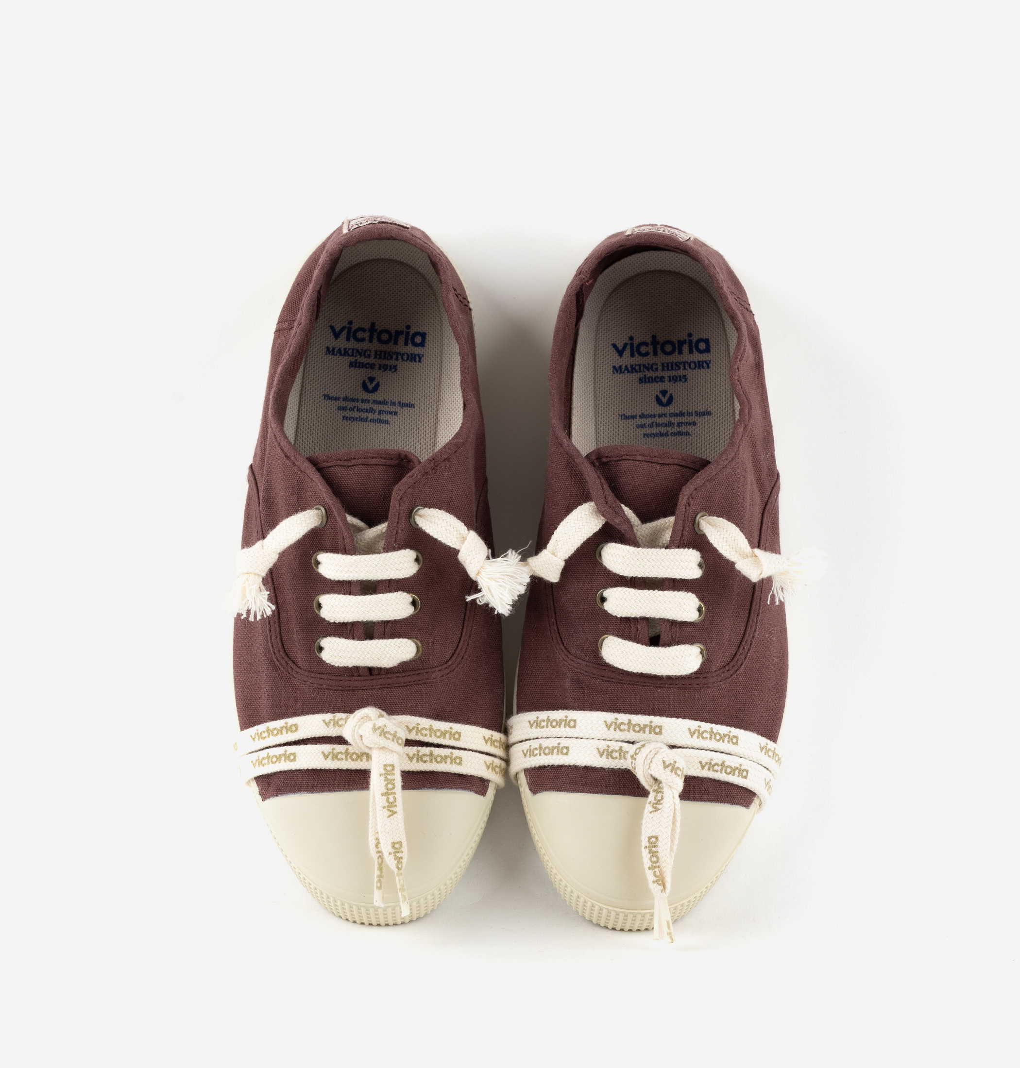 Estas sapatilhas de lona para mulher e homem são fabricadas numa combinação única de algodão reciclado DREC® (Dyeable Recycled Eco Cotton) e algodão ecológico cultivado, fiado e tecido em Espanha. Incorporam fecho com cordões em cru e incluem um segundo par com o logótipo da victoria. Confortável sola de borracha vulcanizada com reforço na biqueira, para maior resistência e durabilidade.
