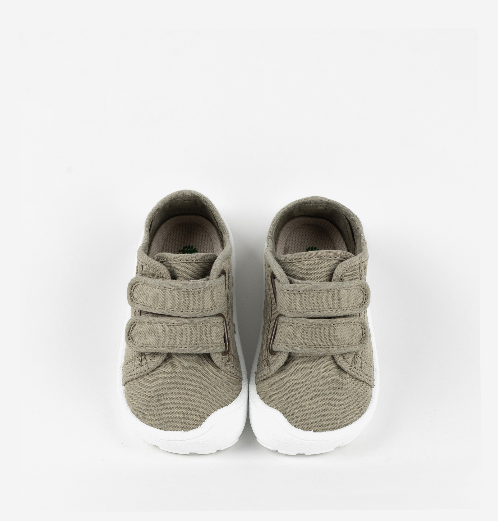 Sapatilhas de lona barefoot para crianças fabricadas numa combinação de algodão reciclado DREC® (Dyeable Recycled Eco Cotton) e algodão ecológico cultivado, fiado e tecido em Espanha. Fecho com duas tiras aderentes, que proporcionam maior fixação e facilitam o calce, incentivando a sua autonomia. Sola branca de TR flexível.