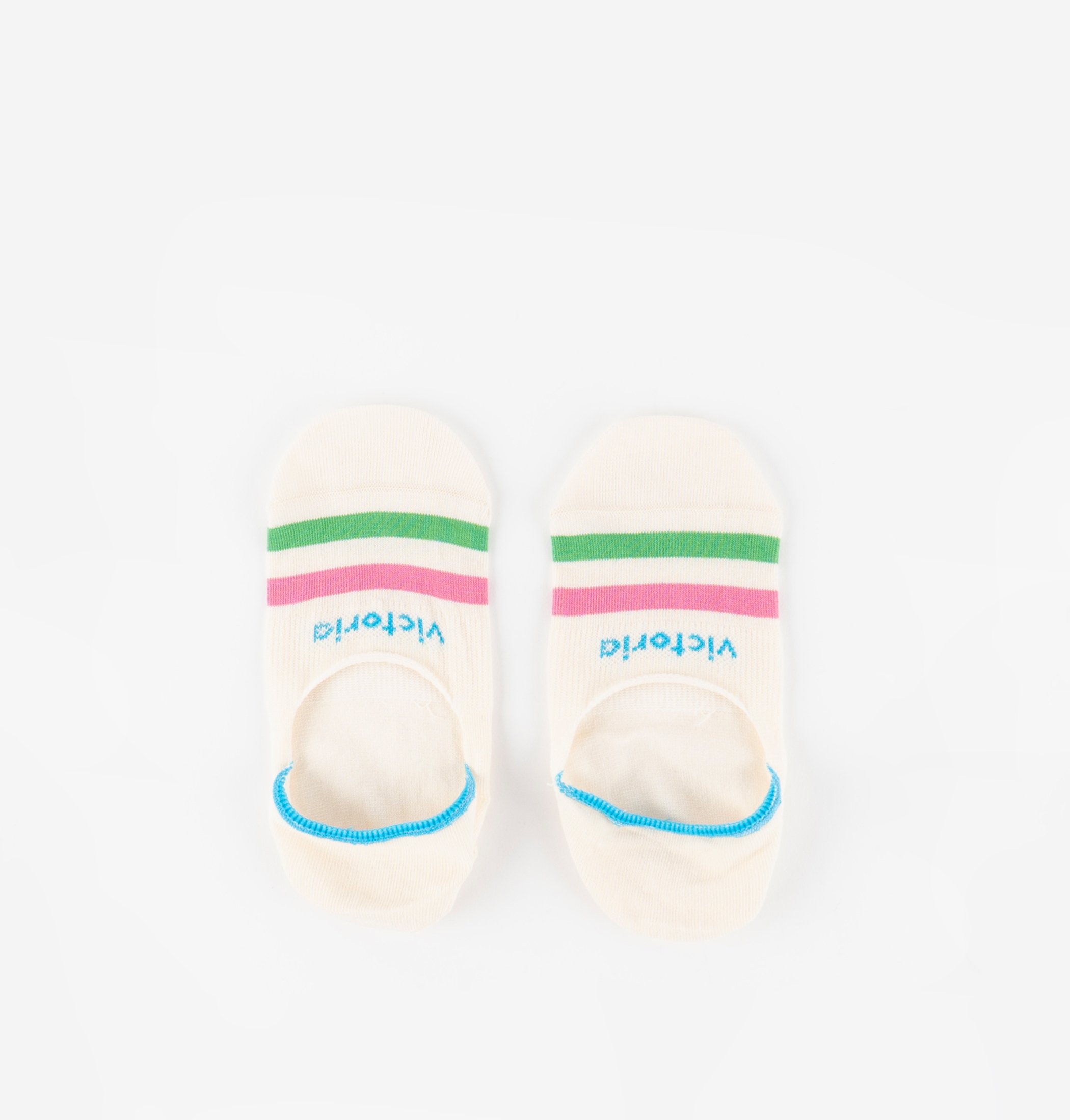 Meia invisível de algodão para mulher com design retrô com listras em combinações de cores e silicone na parte interna do calcanhar para manter a posição correta. Respirável e adaptável.